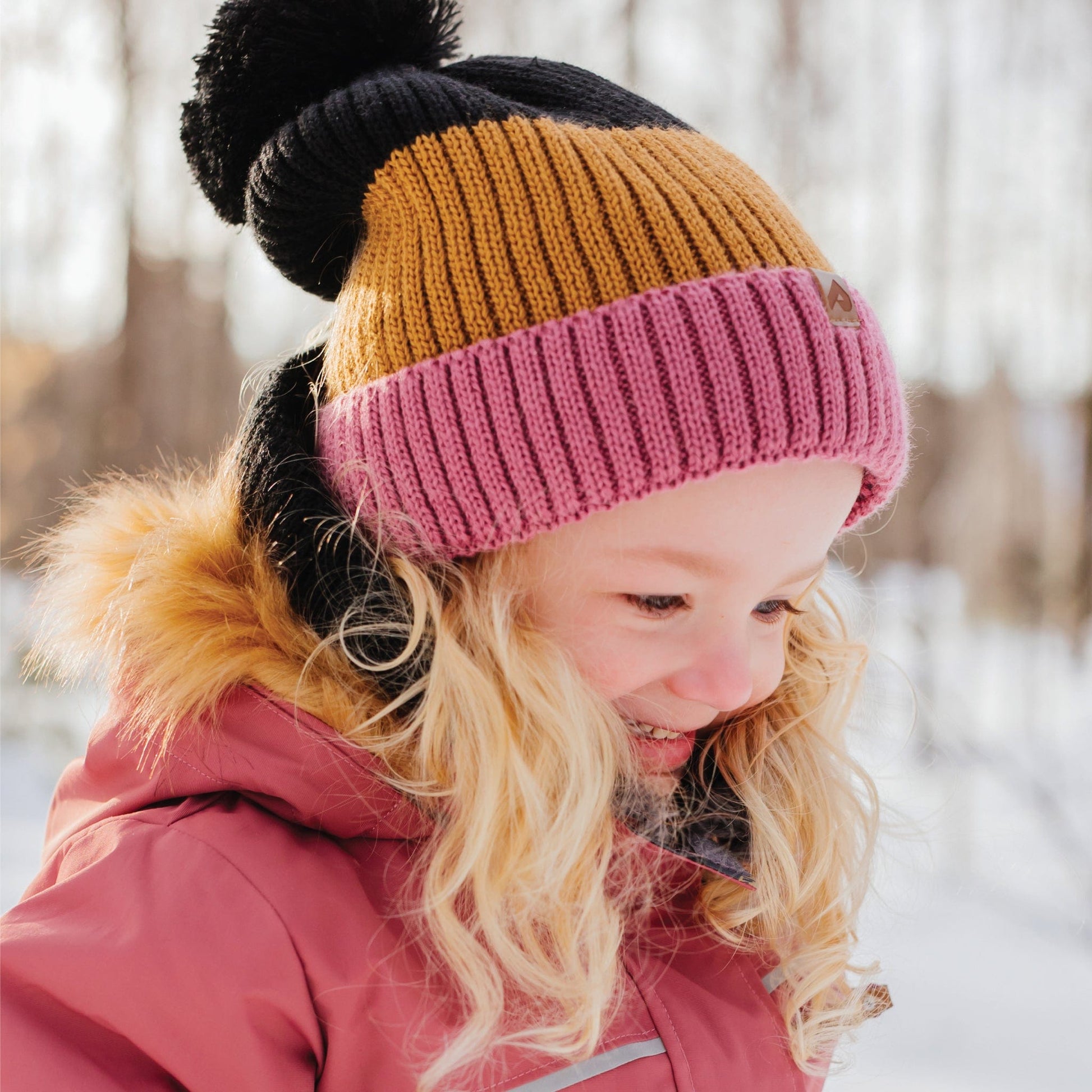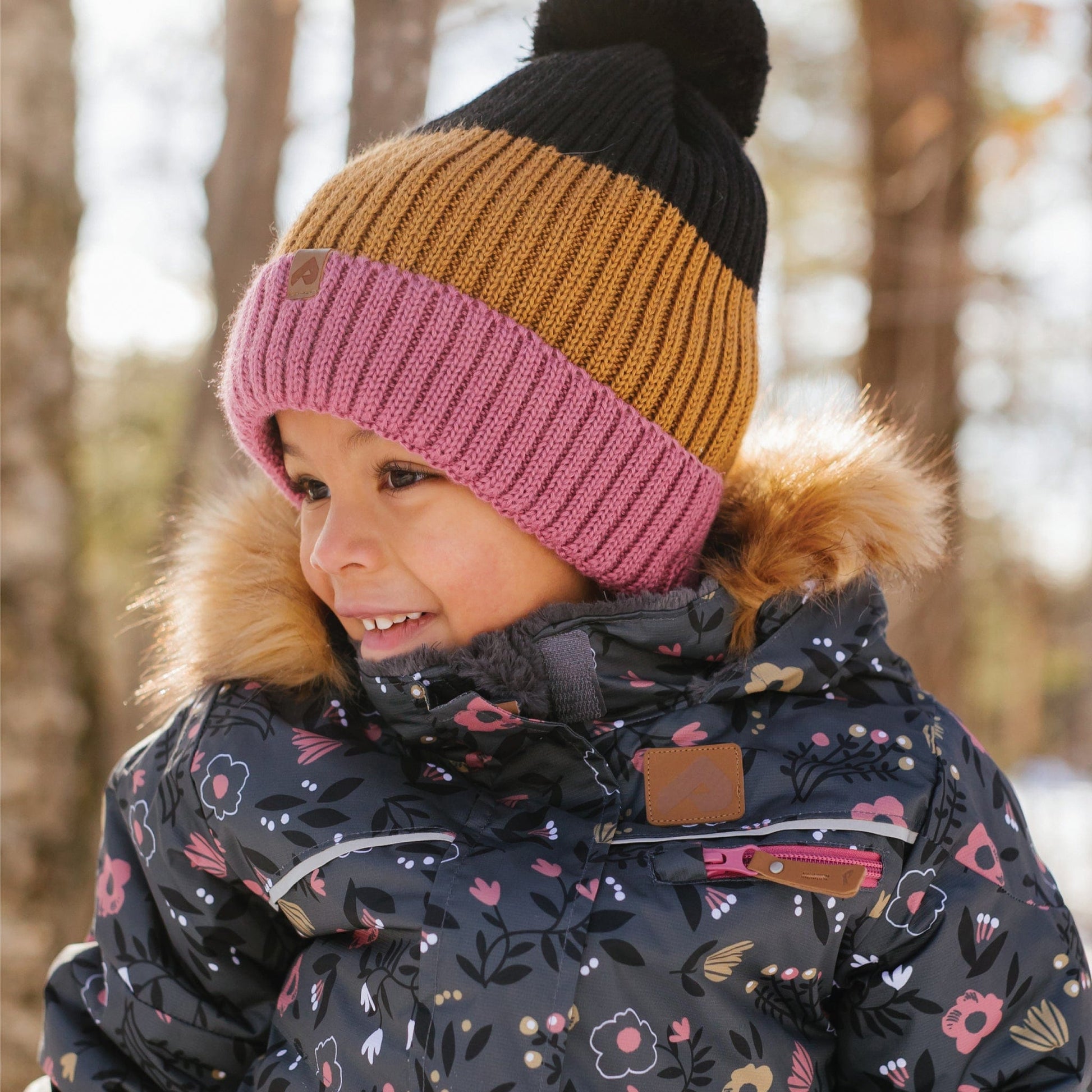 Acrylic hat with fleece lining - Black/Toffee/Punch