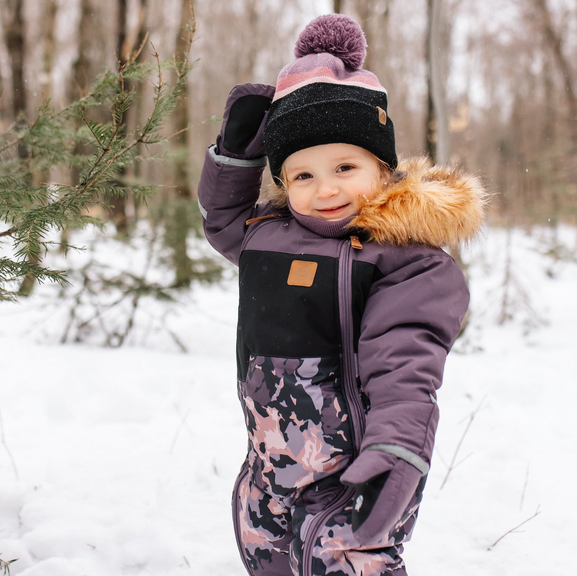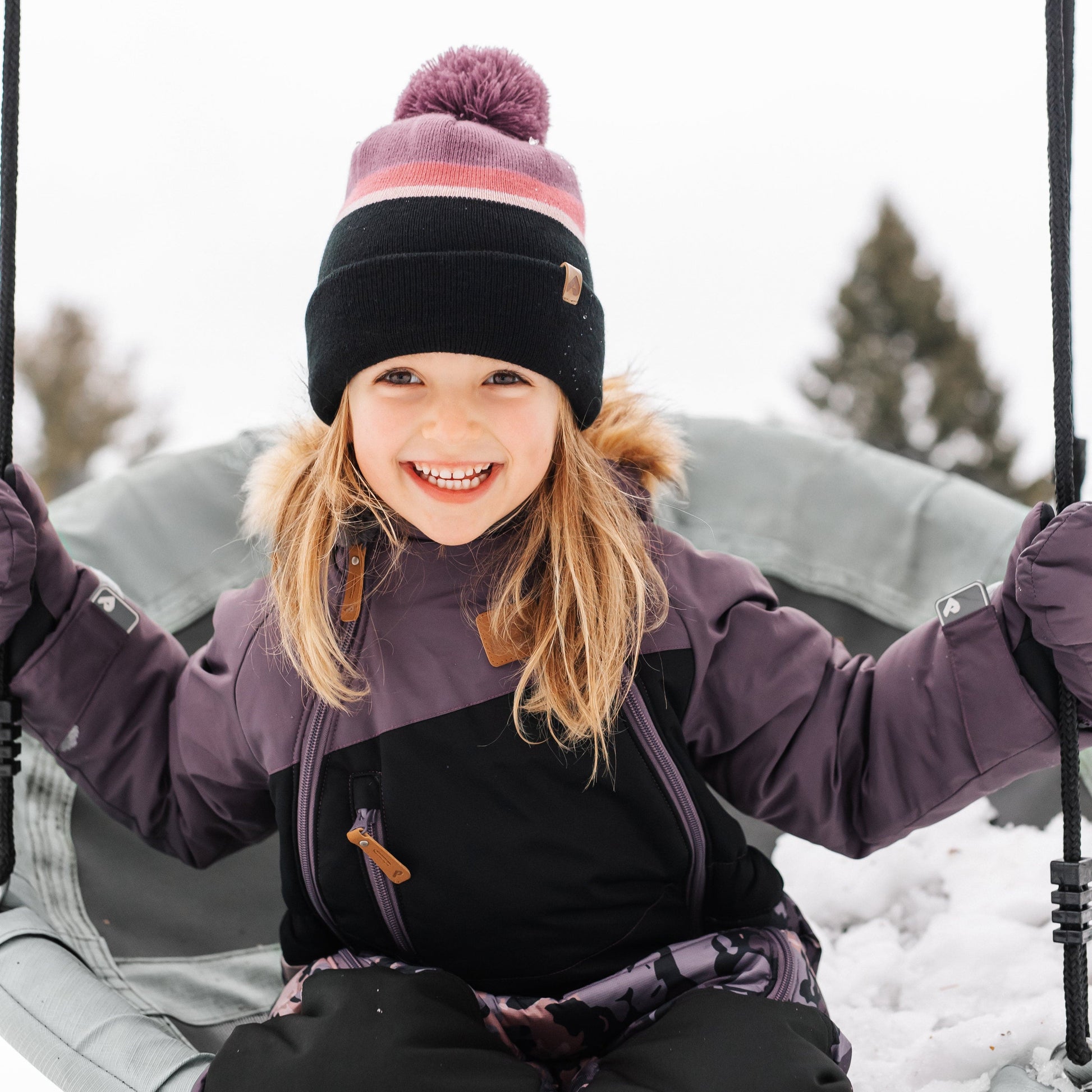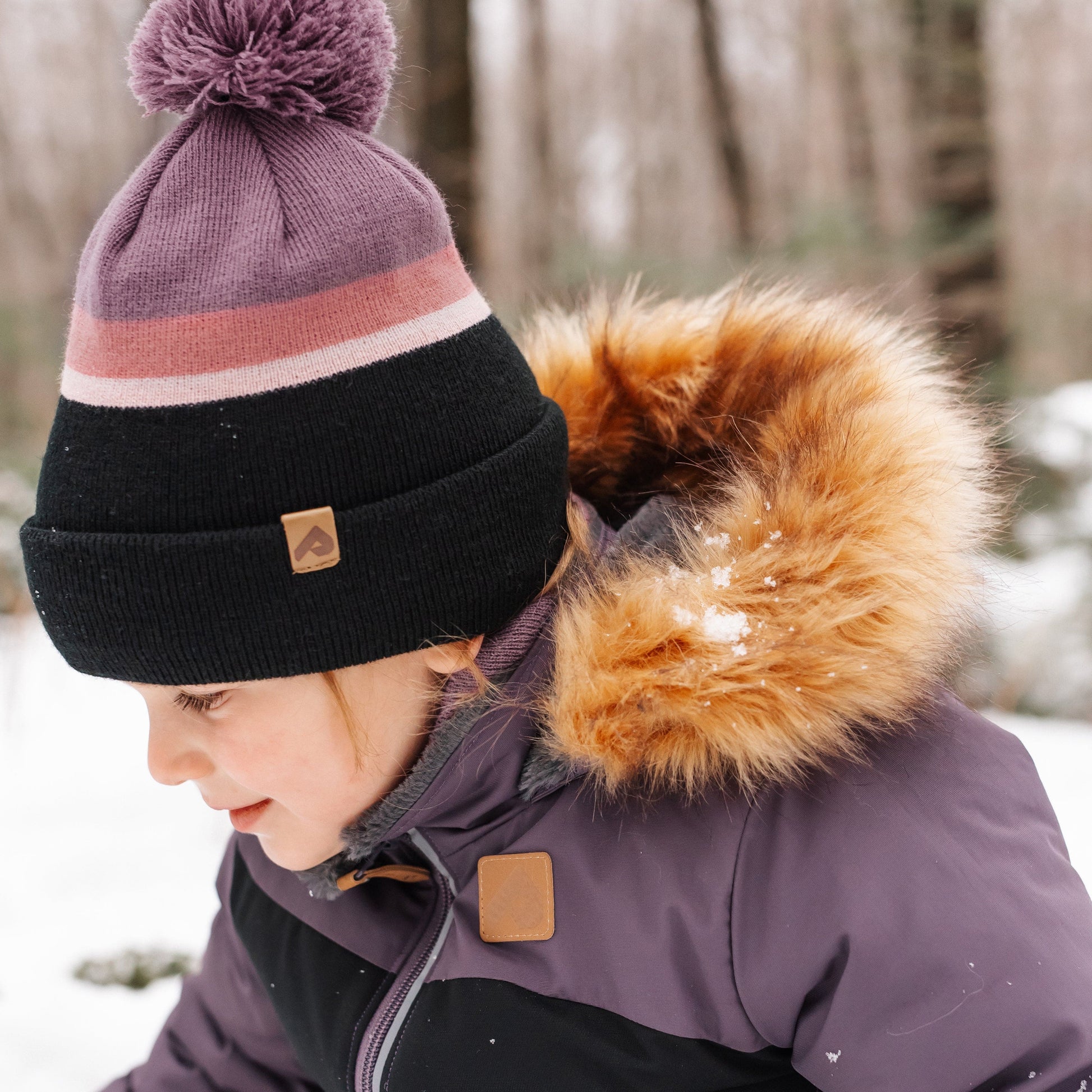 Keep your little one cozy this winter with our expertly designed kids winter hat. Featuring a rich blend of hues and a playful pom-pom, this hat offers a chic touch to any winter outfit. Crafted from quality acrylic with a warm fleece lining, it ensures comfort during every outdoor adventure. With its generous depth, this hat covers the ears fully, providing extra warmth without the need for specific ear covers. Designed in Canada for the modern family, it's a practical yet stylish addition to your child's winter wardrobe.