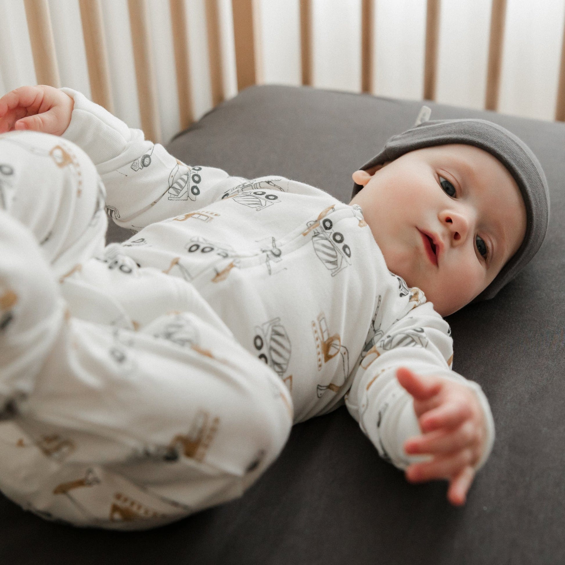 Wrap your little one in comfort and charm with our bamboo baby sleeper, featuring delightful construction-themed prints. Crafted from a soft blend of bamboo viscose and cotton, this sleeper is ideal for sensitive skin, providing breathability and gentle warmth. Designed with practicality in mind, the easy-access zipper simplifies diaper changes, while fold-over mitts protect your baby from scratches. Created by parents for parents, this sleeper ensures a cozy night's sleep, helping you feel confident in your baby's well-being. Proudly designed in Canada, it’s a perfect addition to any nursery.