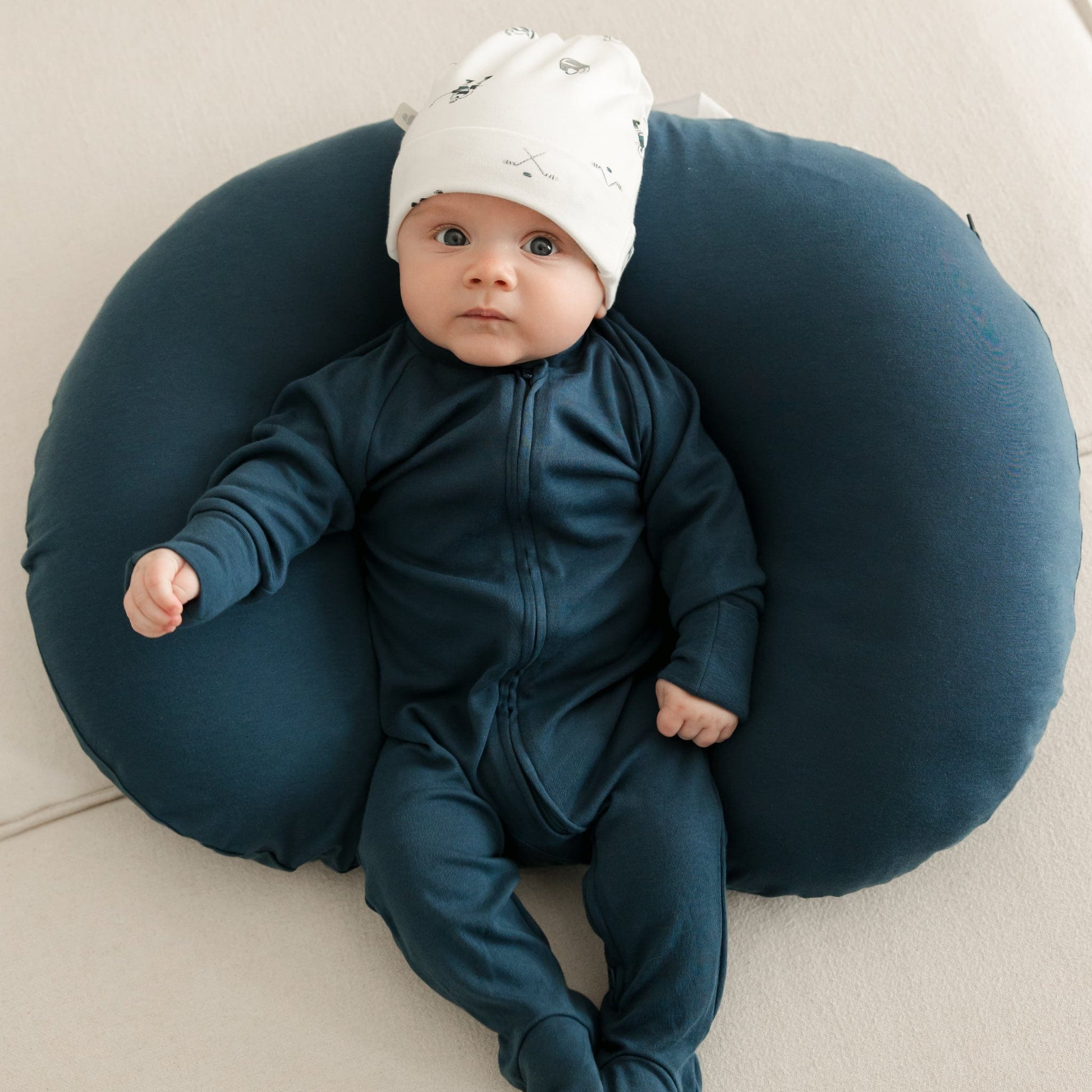Wrap your baby in the ultimate comfort with our bamboo baby sleeper, designed to offer peace of mind to parents. This sleeper, crafted from a soothing blend of bamboo viscose and cotton, is perfect for sensitive skin and provides a cozy feel. Its deep, calming hue adds a touch of serenity to your baby's wardrobe. The practical zipper makes diaper changes a breeze, while the fold-over mitts for sizes 0-9 months ensure your little one stays scratch-free. Designed in Canada, this essential piece combines functionality and style seamlessly.