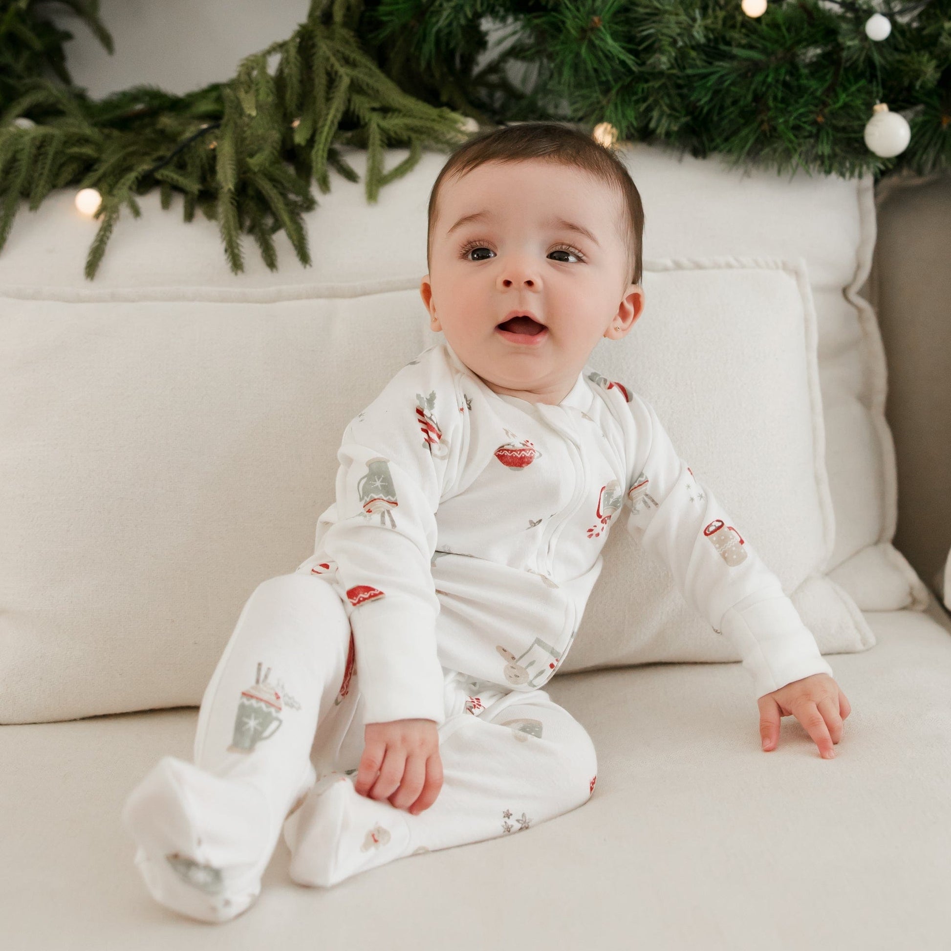 Wrap your little one in the comfort of our bamboo baby sleeper, adorned with delightful holiday treat motifs. This cozy sleeper, crafted from a bamboo-cotton blend, is gentle on sensitive skin, making it ideal for babies with allergies or eczema. Designed in Canada, its soft and breathable fabric ensures your baby stays comfortable through every season. The convenient zipper simplifies diaper changes, while the fold-over mitts protect tiny hands. Rigorously tested for safety, this adorable sleeper is a must-have addition to your baby's wardrobe.