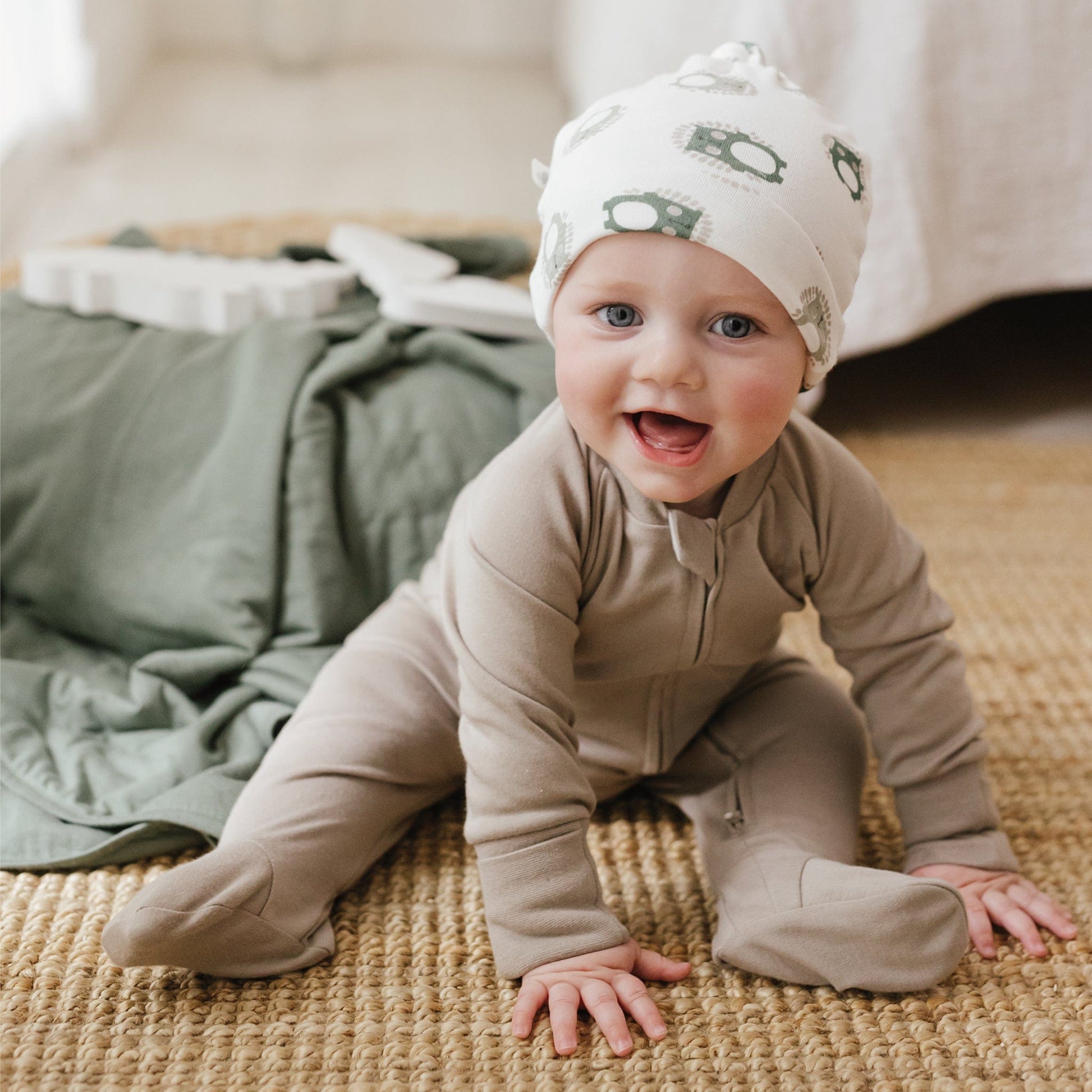 Made of viscose from bamboo, this Perlimpinpin's newborn beanie will protect baby's head from UV rays in the coziest way while maintaining baby's natural body heat.