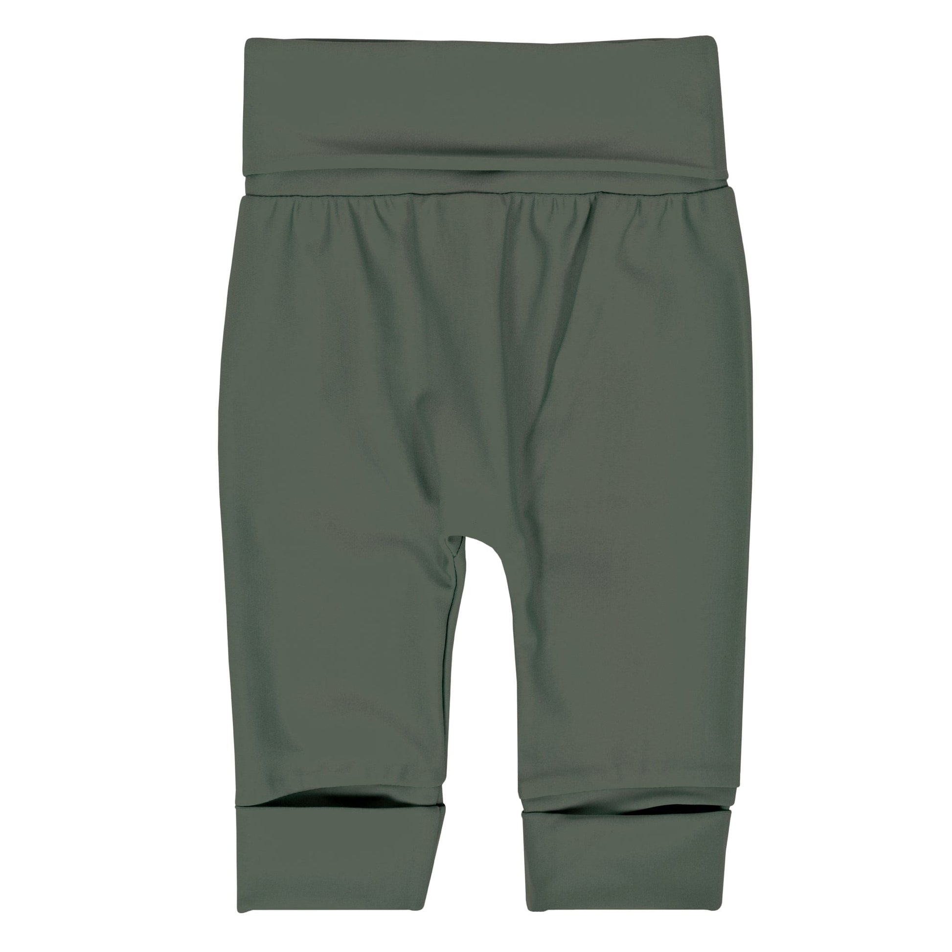 These baby UV beach pants UPF 50+ are thoughtfully designed to keep little legs protected while you soak up carefree family time by the water. Our evolutive beach pants for babies and kids offer UPF 50+ sun protection — perfect for carefree days under the sun. The deep, nature-inspired solid shade pairs easily with any rash guard, while the smooth, stretchy fabric feels soft against sensitive skin and dries quickly after every splash. Made from recycled materials, these grow-with-me pants are designed in Canada by parents who understand how much you value comfort and safety. The adjustable waistband height and foldable hems adapt as your baby grows, so you can rely on the same pair from the first wobbly steps to confident beach adventures. A practical, comfy, and sun-safe essential for all their summer adventures, from sandcastles to paddleboard breaks.