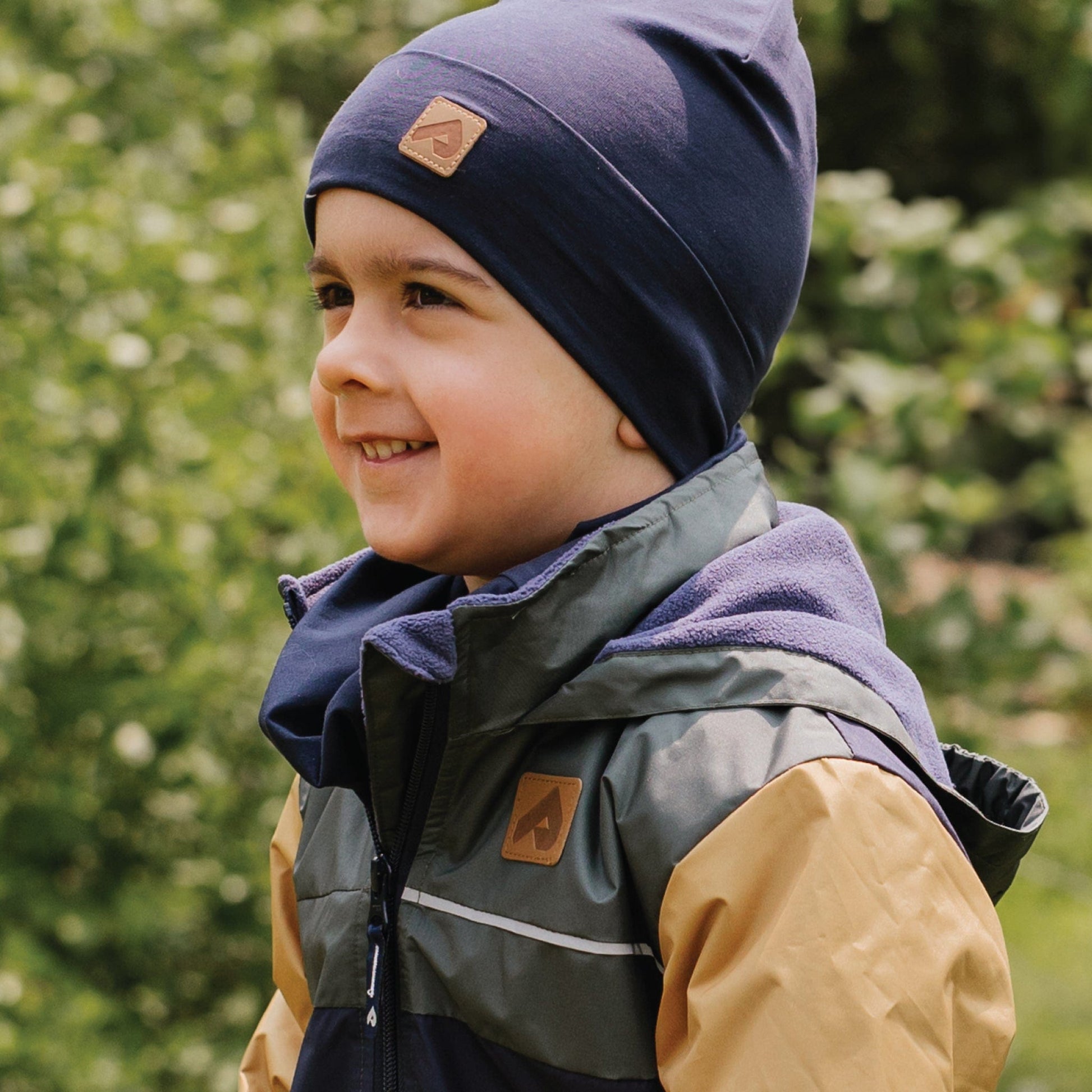 Our little jersey beanie is perfect for cooler days. Made from soft and stretchy cotton, this easy-to-slip-on hat is enhanced with a decorative vegan leather tag on the front flap. It pairs perfectly with our two-piece sets, one-piece outfits, or even our baby buntings.