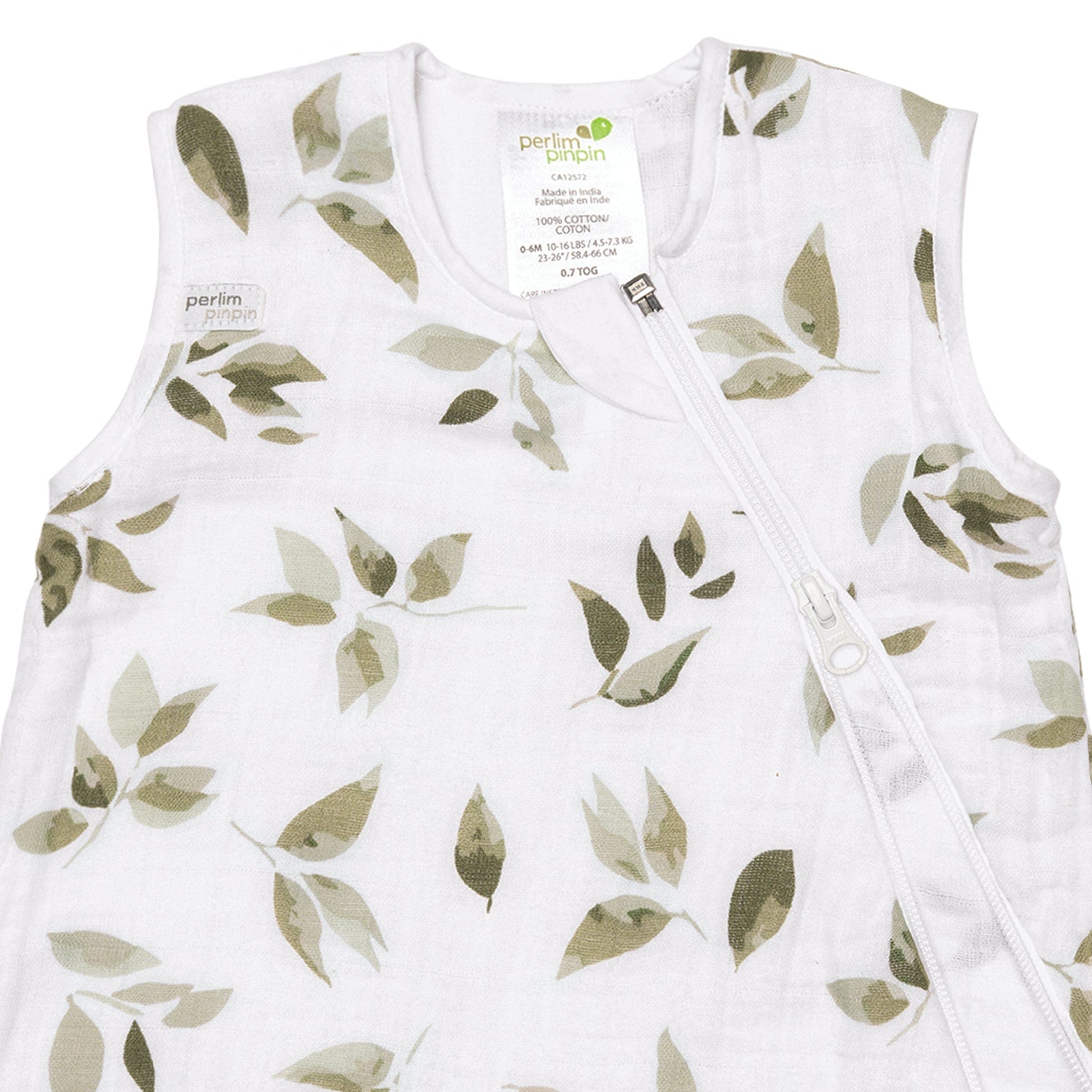 Cotton muslin sleep sack - Leaves (0.7 tog)
