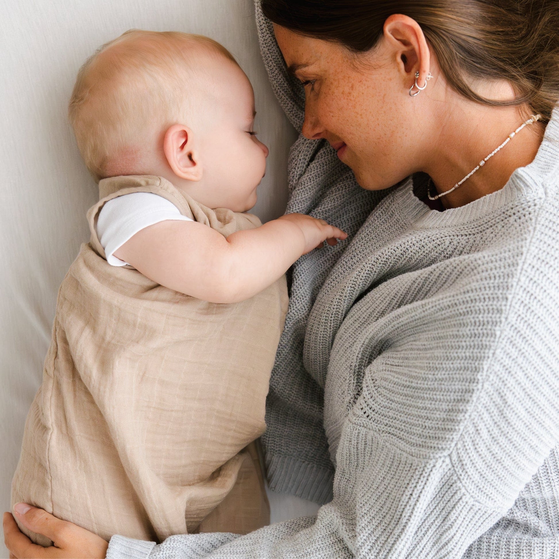 Our cotton muslin sleep sack 0.7 TOG wraps your baby in airy softness, offering the light comfort you want for warmer nights. This cotton muslin sleep sack 0.7 tog is designed in Canada by parents who understand how precious uninterrupted sleep can be. The gauzy, sand-inspired hue and subtle woven texture bring a calm, natural feel to your baby’s sleep space, pairing easily with any bedding. Made from breathable cotton muslin that feels gentle on sensitive skin, it’s an ideal lightweight summer sleep sack 0.7 tog and a cozy layer for naps year-round. The secure neckline and smart zipper placement help keep your little one safely covered while making changes simple. Rigorously tested by third-party labs, this baby muslin sleep sack 0.7 tog Canada meets international safety standards so you can relax once the lights are out.