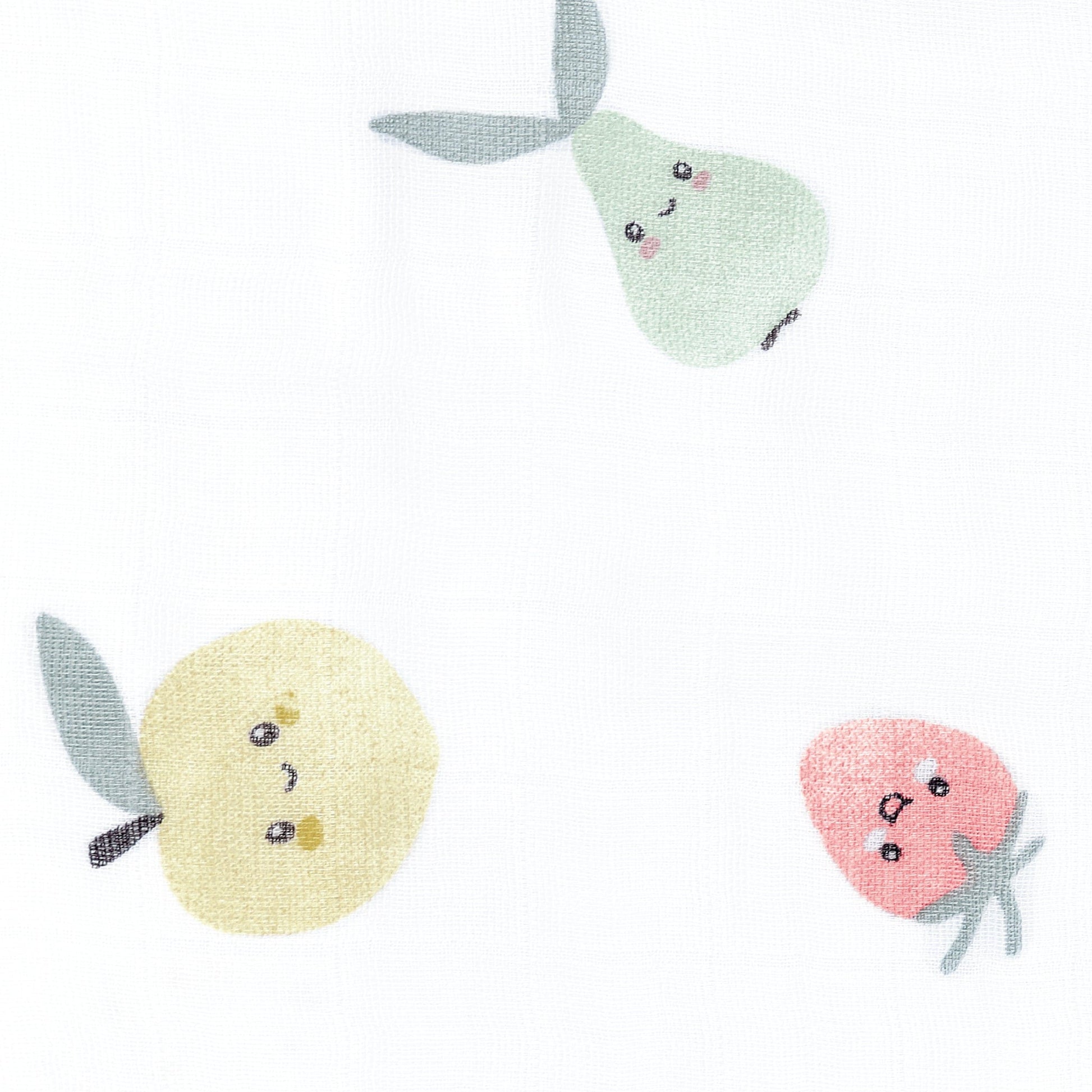 This cotton muslin swaddle blanket brings a touch of playful sweetness to everyday routines. As a soft, breathable cotton muslin swaddle blanket, it helps your newborn feel snug while you feel confident and supported. The airy weave keeps baby comfortable in every season, and the cheerful fruit characters in gentle pastel tones add a fun, lighthearted look to the nursery, stroller, or diaper bag. Thoughtfully designed in Canada by parents, this 100% cotton muslin baby swaddle Canada families love is pre-washed so it feels cozy from day one and softens even more with each wash. Use this lightweight breathable muslin swaddle for newborn naps, as a printed muslin swaddle blanket for baby in the stroller, or as a large cotton muslin swaddle for stroller and nursing throughout the day.