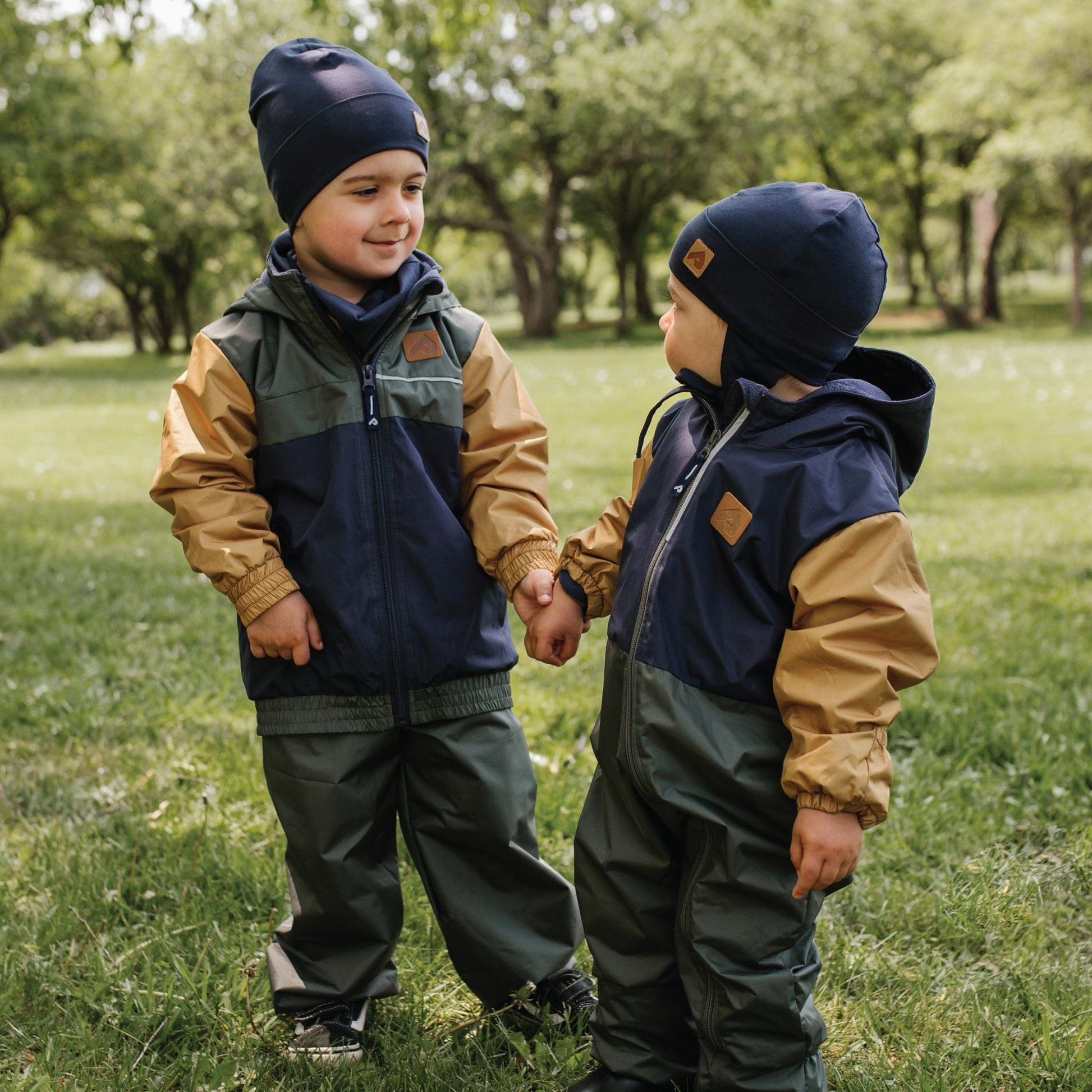 Transform chilly days into joyful outdoor moments with our two-piece mid-season set, featuring a hooded coat and pants, lined with comfortable fleece. The coat offers a high-quality YKK central zipper, a fleece-lined hood, and elastic wrist cuffs. The bottom of the coat is also elasticized for a more modern and trendy look. The coordinated pants are elasticized at the waist and ankles for added comfort. This set, both wind-resistant and water-resistant, ensures the comfort to toddlers regardless of the temperature.