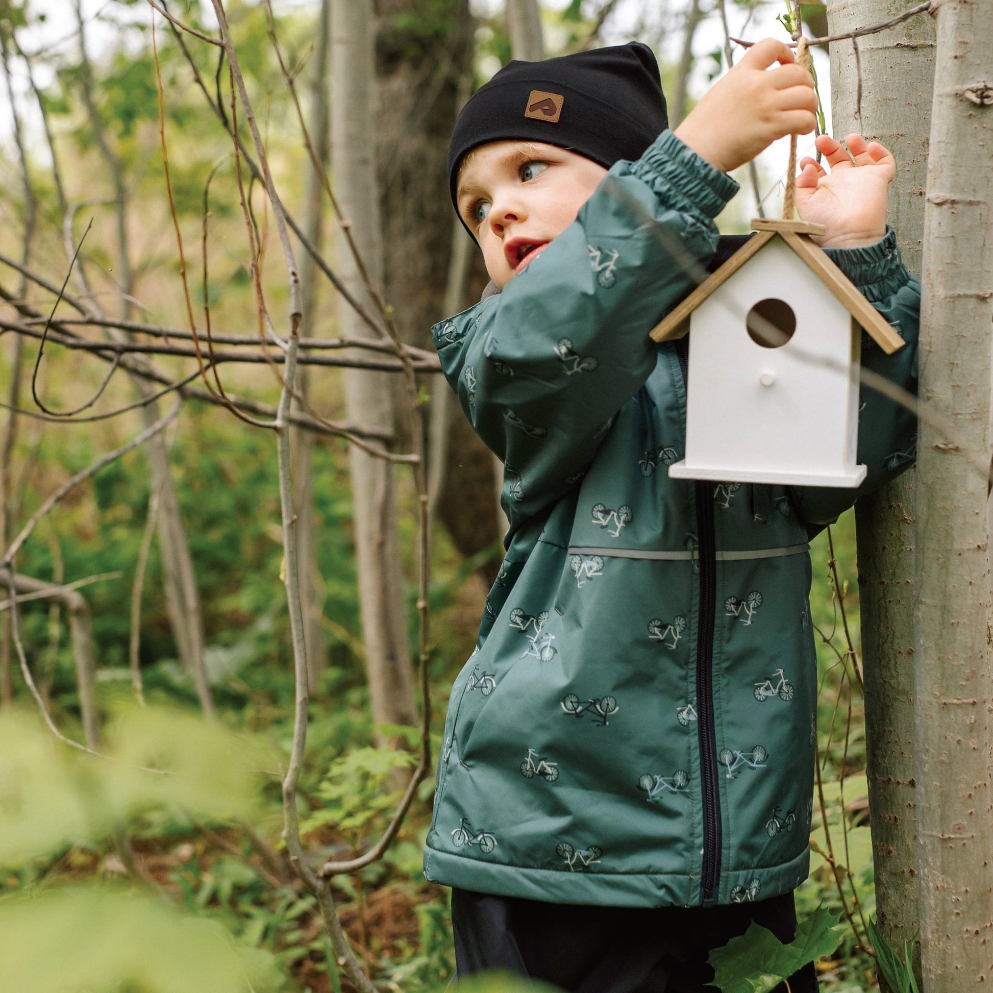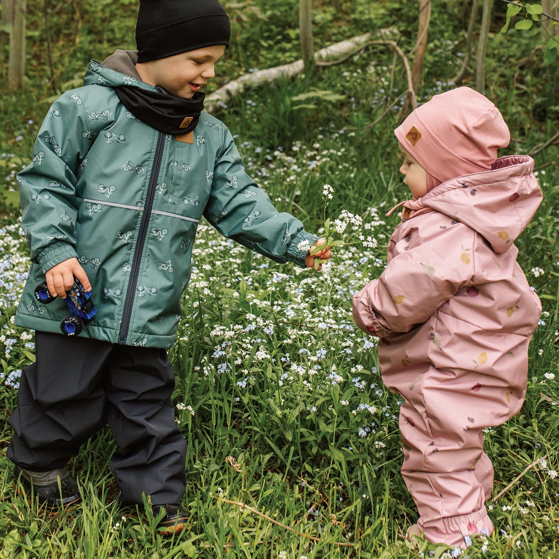 Transform chilly days into joyful outdoor moments with our two-piece mid-season set, featuring a hooded coat and pants, lined with comfortable fleece. The coat offers a high-quality YKK central zipper, a fleece-lined hood, and elastic wrist cuffs. The bottom of the coat is also elasticized for a more modern and trendy look. The coordinated pants are elasticized at the waist and ankles for added comfort. This set, both wind-resistant and water-resistant, ensures the comfort to toddlers regardless of the temperature.