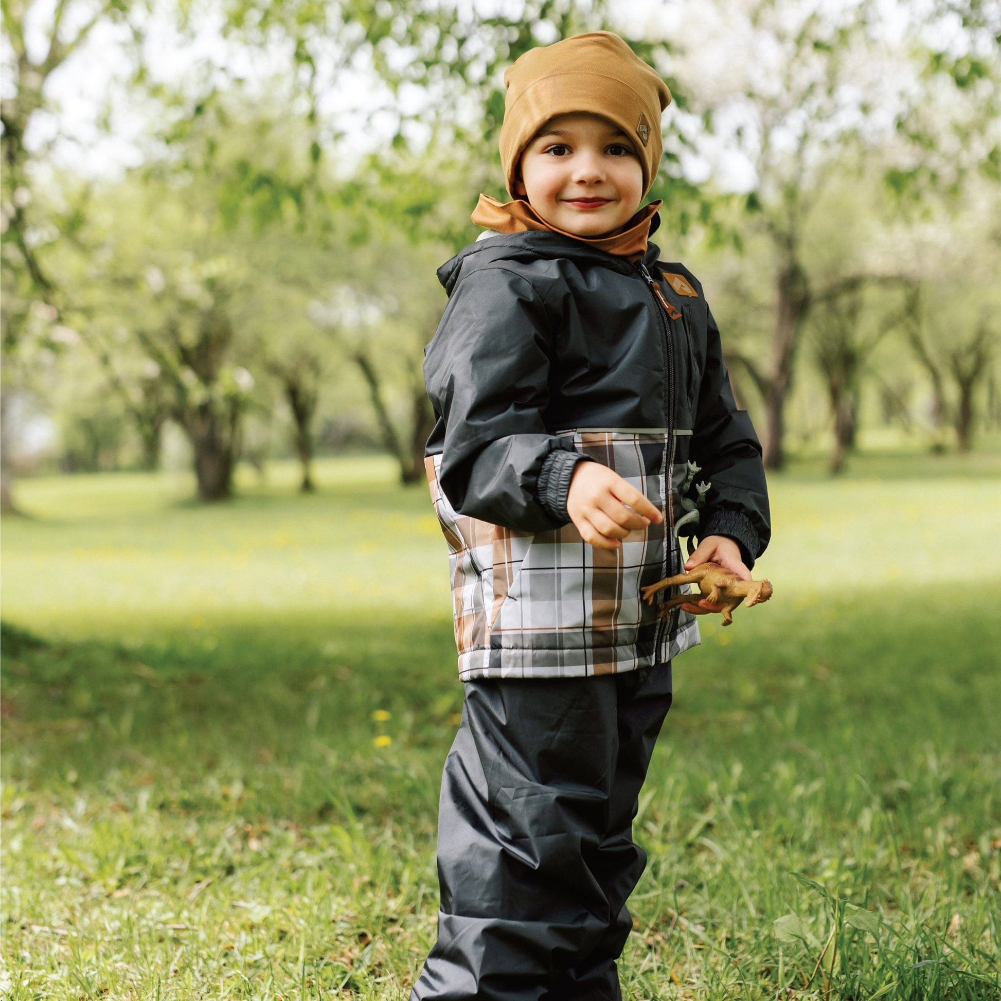 Transform chilly days into joyful outdoor moments with our two-piece mid-season set, featuring a hooded coat and pants, lined with comfortable fleece. The coat offers a high-quality YKK central zipper, a fleece-lined hood, and elastic wrist cuffs. The bottom of the coat is also elasticized for a more modern and trendy look. The coordinated pants are elasticized at the waist and ankles for added comfort. This set, both wind-resistant and water-resistant, ensures the comfort to toddlers regardless of the temperature.