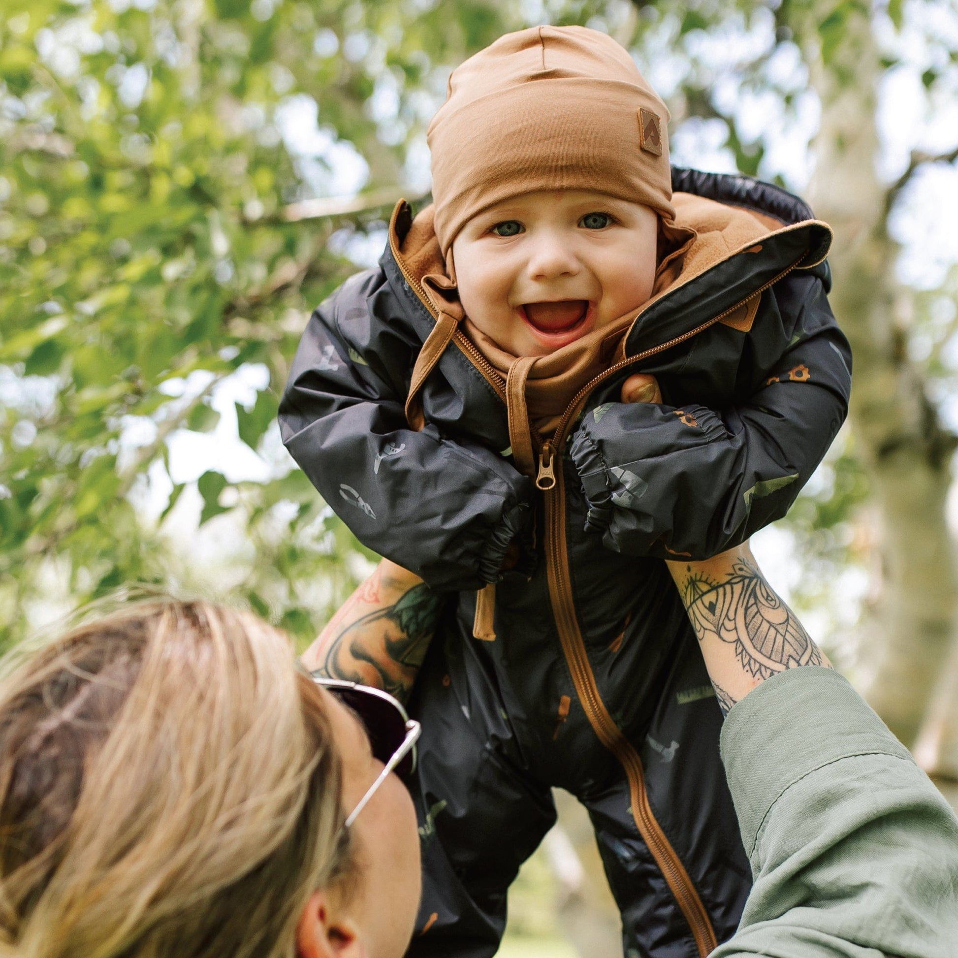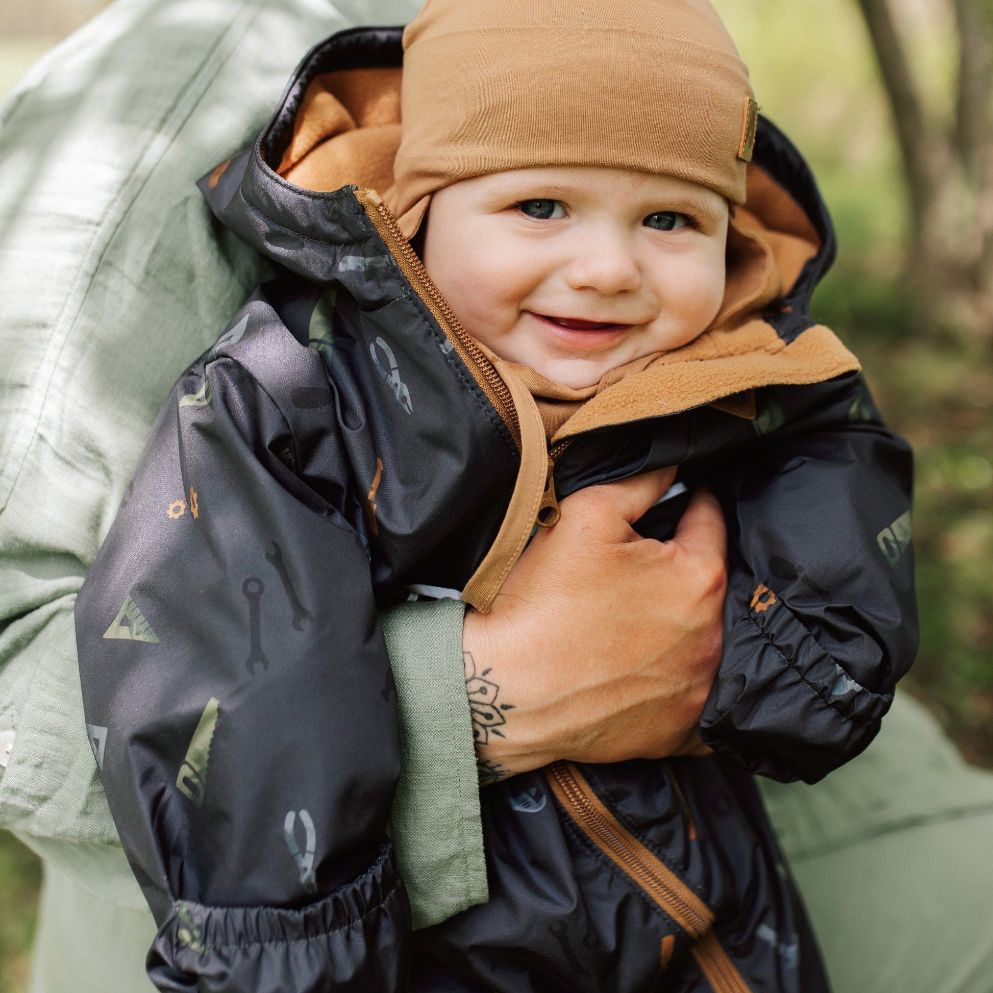 Transform chilly days into joyful outdoor moments with our one-piece mid-season for baby. This one piece features a high-quality YKK central zipper, a fleece-lined hood, and elastic cuffs and ankles. Its convenient flaps at the hands and feet provide added versatility to this wind-resistant and water-resistant baby one piece suit, ensuring the comfort of the little ones regardless of the temperature