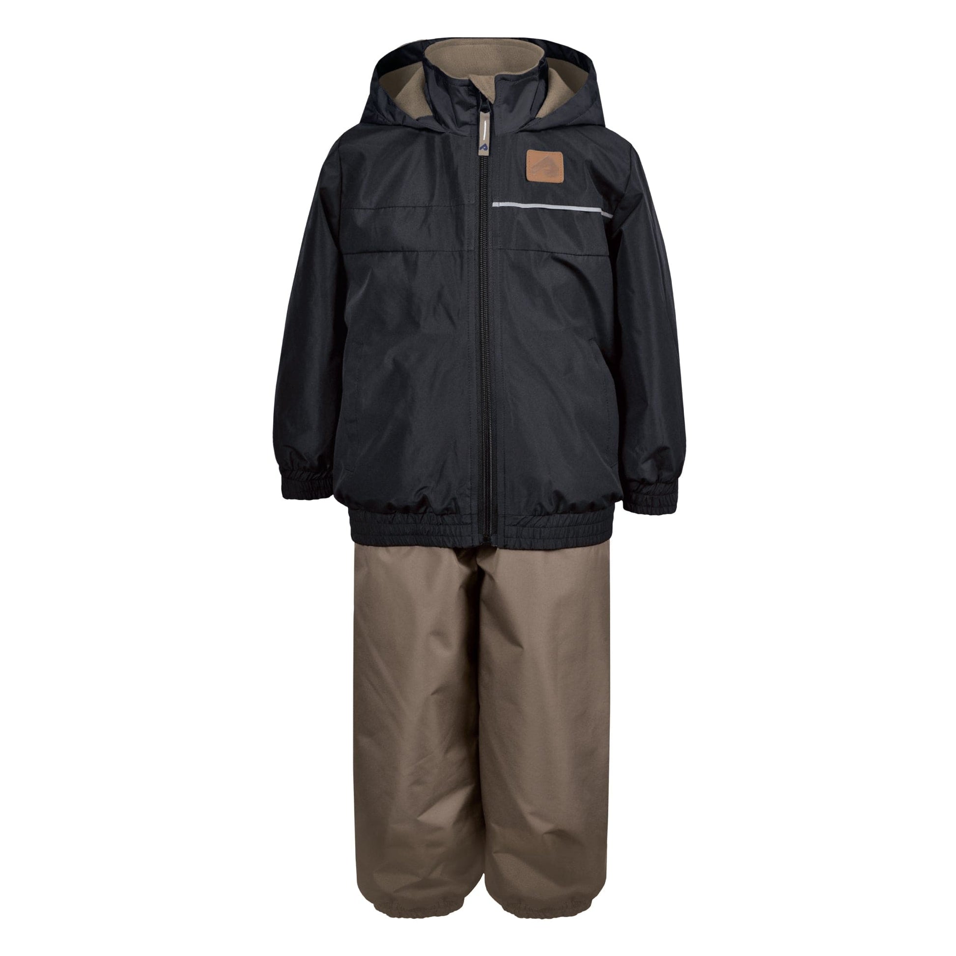 Transform chilly days into joyful outdoor moments with our two-piece mid-season set, featuring a hooded coat and pants, lined with comfortable fleece. The coat offers a high-quality YKK central zipper, a fleece-lined hood, and elastic wrist cuffs. The bottom of the coat is also elasticized for a more modern and trendy look. The coordinated pants are elasticized at the waist and ankles for added comfort. This set, both wind-resistant and water-resistant, ensures the comfort to toddlers regardless of the temperature.