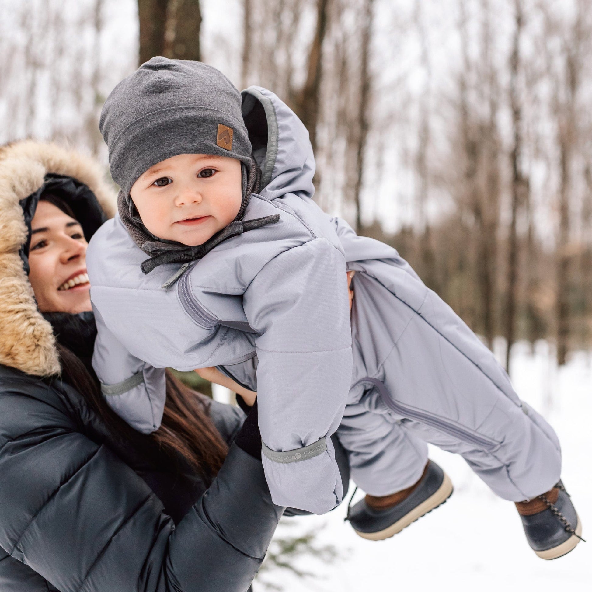 Discover the ultimate in warmth and protection with our pebble-toned one-piece baby snowsuit, designed in Canada to include recycled materials. This snowsuit offers peace of mind to parents by combining thoughtful design with everyday functionality. Its sleek, weather-resistant design features a partially removable over-vest, allowing for a secure fit in car seats without extra bulk. Breathable yet insulating, it ensures your little one stays comfortable during outdoor adventures. The soft, smooth exterior and cozy interior make it ideal for both winter play and family outings, embodying Perlimpinpin’s commitment to quality and care.