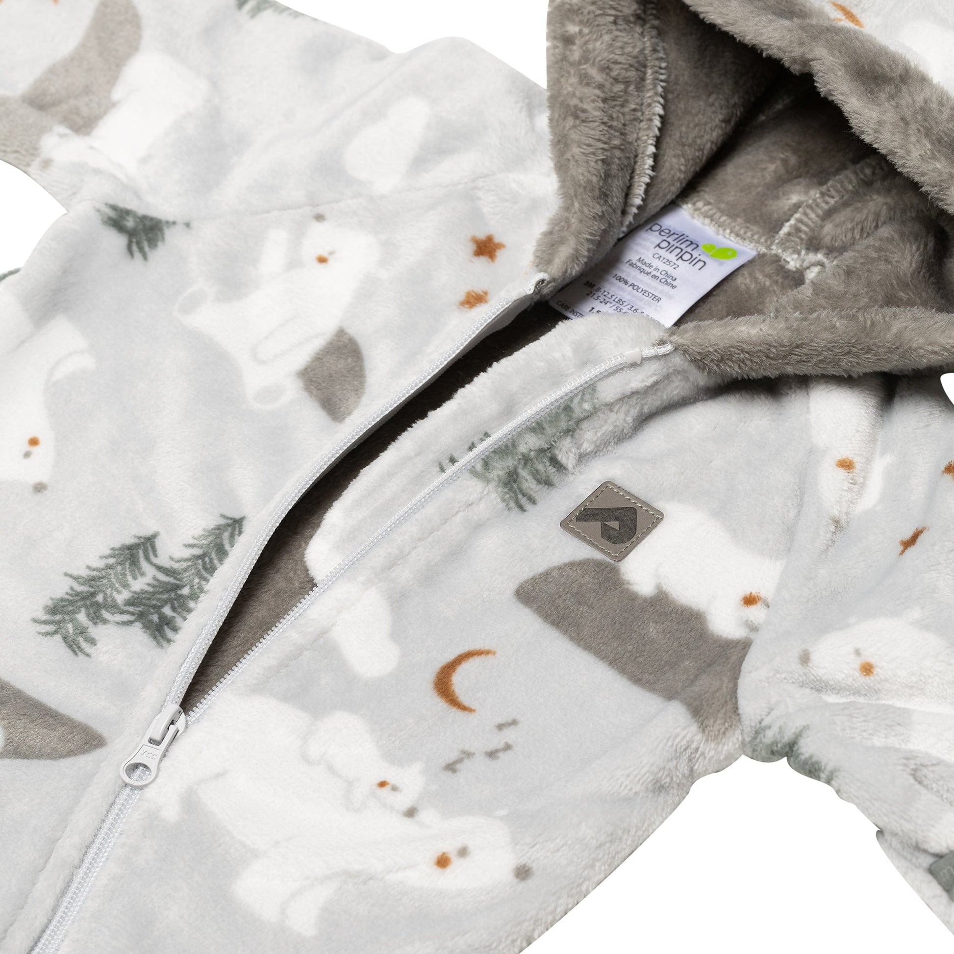 Embrace the transitional seasons with our plush baby bundler, designed to offer comfort and warmth during unpredictable weather. The delightful bear motif, featuring playful woodland scenes, adds a charming touch to this cozy suit. Crafted from ultra-soft plush fabric, it provides the right balance of warmth and softness, keeping your little one snug. The full-length zipper ensures easy dressing, while the fold-over hand and foot covers protect tiny fingers and toes. Ideal for stroller walks or car rides, this mid-season baby bundler is the perfect blend of practicality and style, helping parents feel at ease and confident.