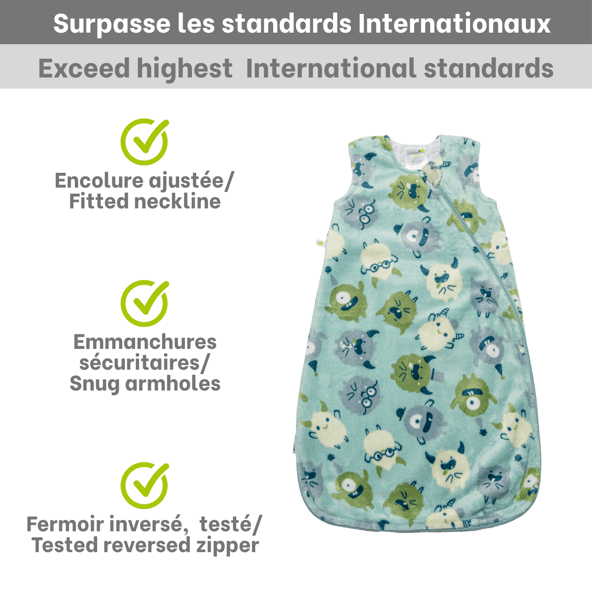 Wrap your baby in imaginative comfort with our plush sleep sack featuring charming monster designs. This 1.5 TOG sleep bag is crafted from recycled polyester, combining softness with eco-consciousness. Designed in Canada, it provides the warmth needed for a cozy night's sleep while ensuring safe movement. The playful monster pattern adds a touch of fun to bedtime, making it a delightful addition to your baby's sleep routine. With a thoughtful reverse zipper, nighttime changes are quick and easy, allowing you to focus on more restful moments.