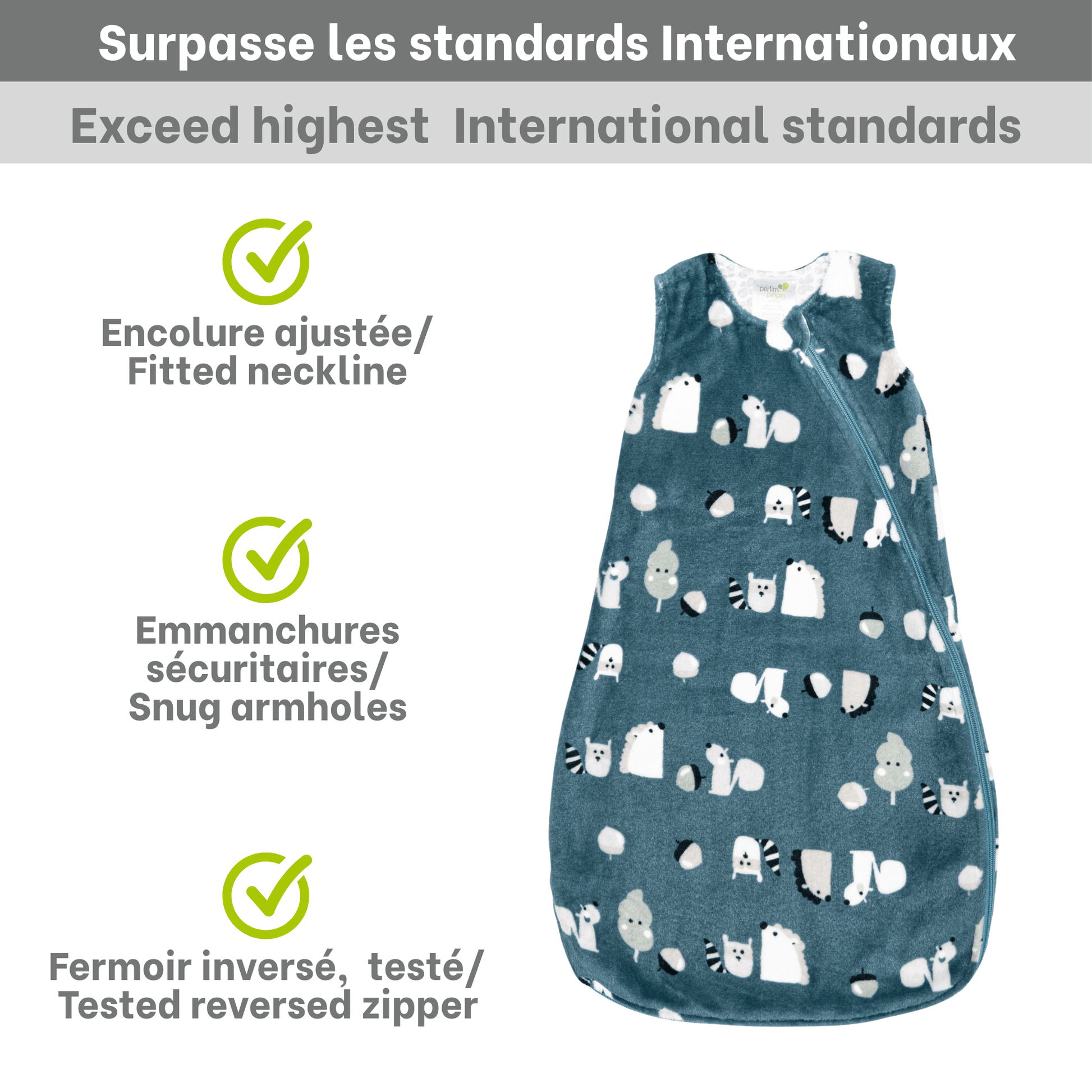 Ensure your baby's comfort with our plush sleep sack, designed for warmth and peace of mind. Featuring a delightful animal pattern, this sleep sack wraps your little one in soft, cozy fabric made from recycled materials—perfect for those chilly nights. With a 1.5 TOG rating, it's ideal for the Canadian winter, providing a secure and snug fit. Thoughtfully crafted with a reverse zipper for effortless diaper changes, this sleep sack also ensures safety by never slipping over your baby's head. Designed in Canada, it's a cozy addition to your baby's sleep routine that parents can trust.