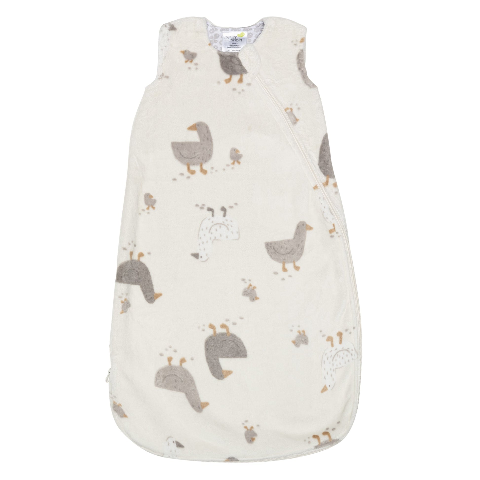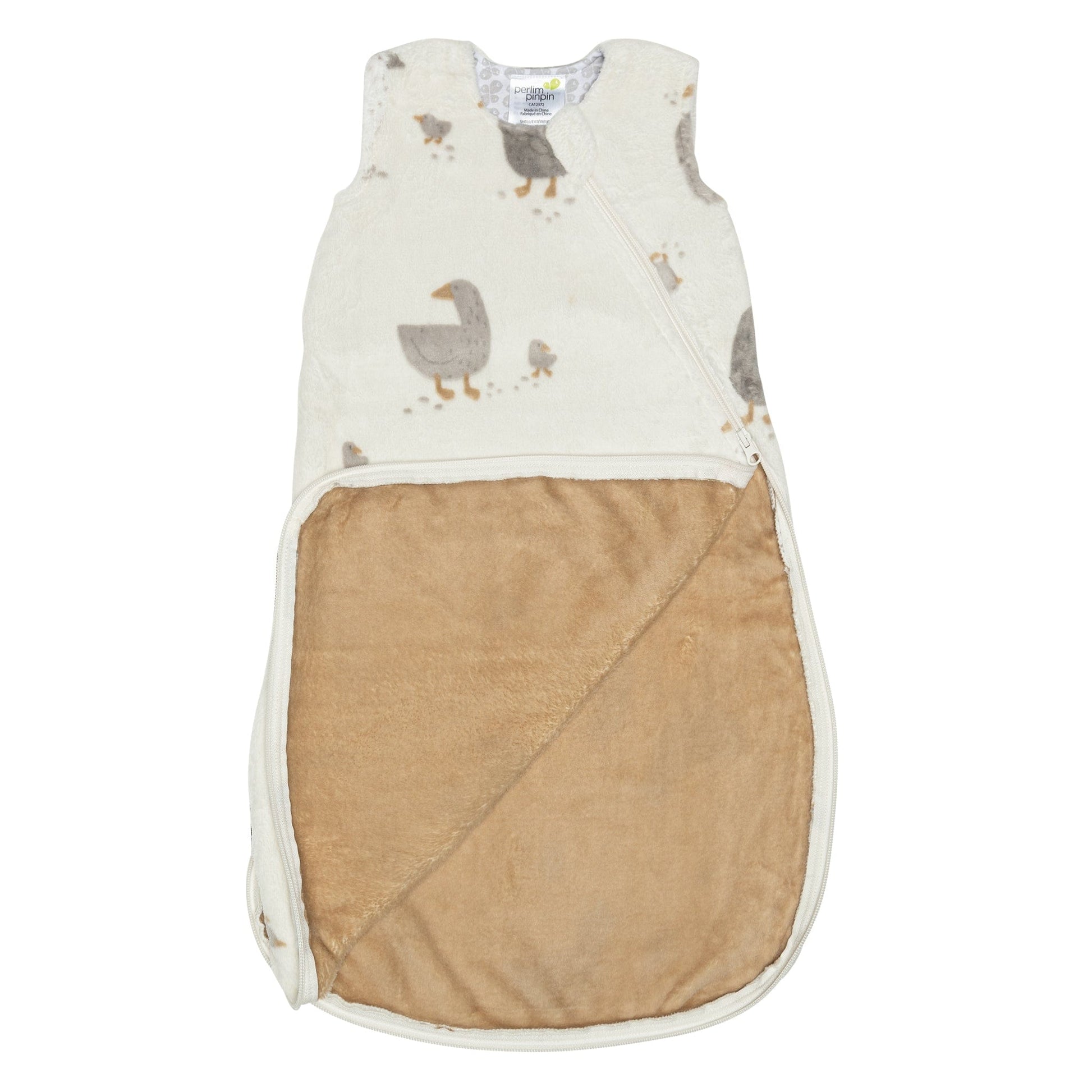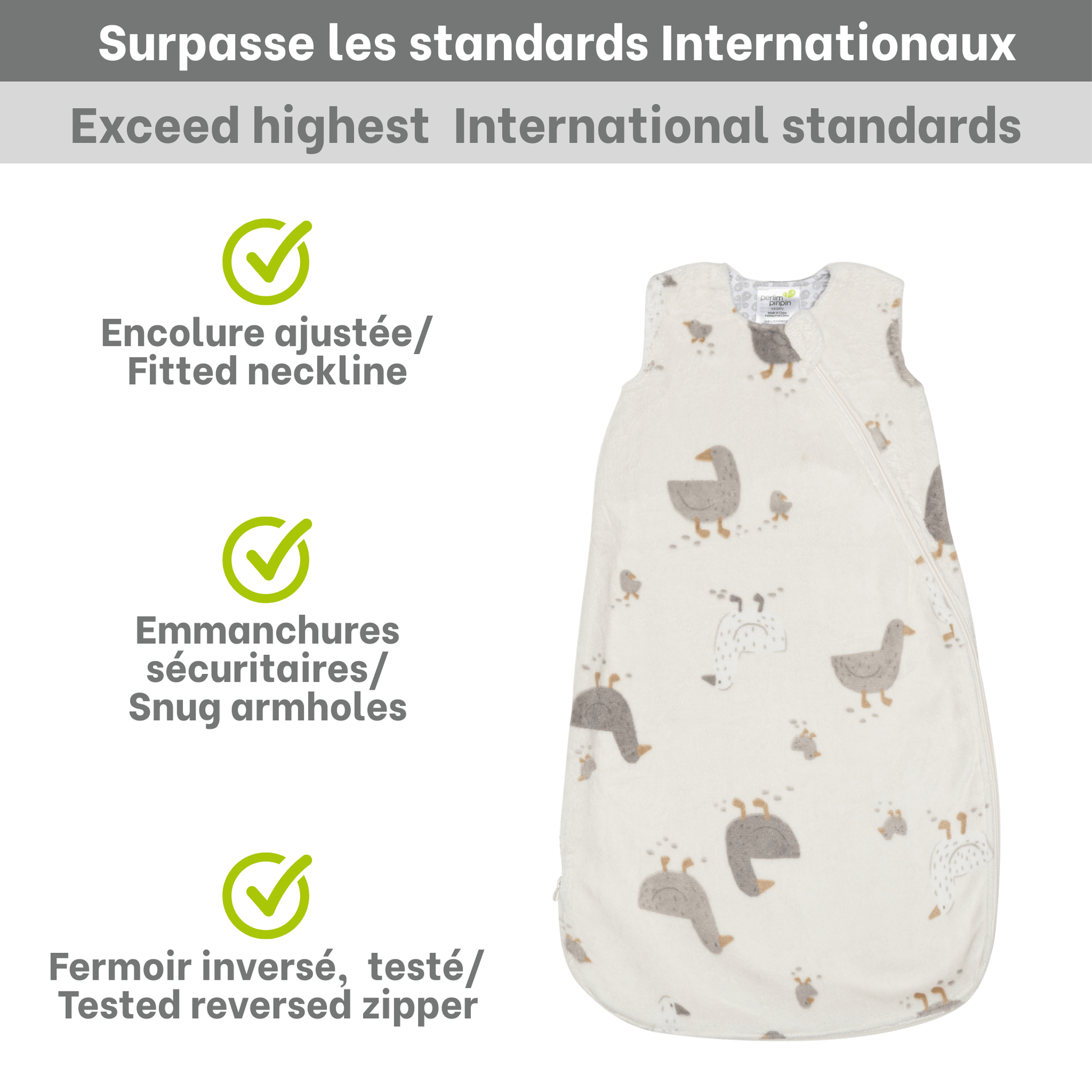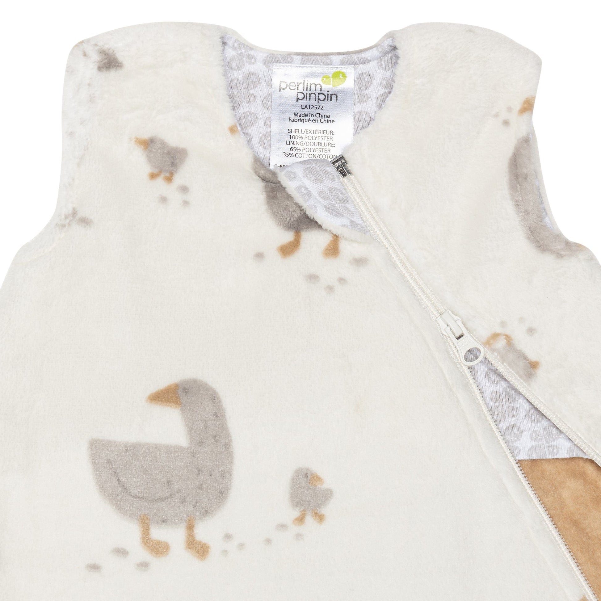 Wrap your little one in warmth and comfort with the Perlimpinpin plush sleep sack, designed for peace of mind and restful nights. Featuring a delightful geese pattern, this sleep sack (1.5 TOG) is perfect for the chilly Canadian winter. Crafted with a soft polyester shell and cozy lining, it ensures your baby's safety and warmth throughout the night. The reverse zipper makes diaper changes a breeze, while the secure neckline keeps everything in place. Designed by Canadian parents with real family life in mind, this sleep sack is tested to meet international safety standards, providing a trustworthy and cozy solution for your baby's sleep.