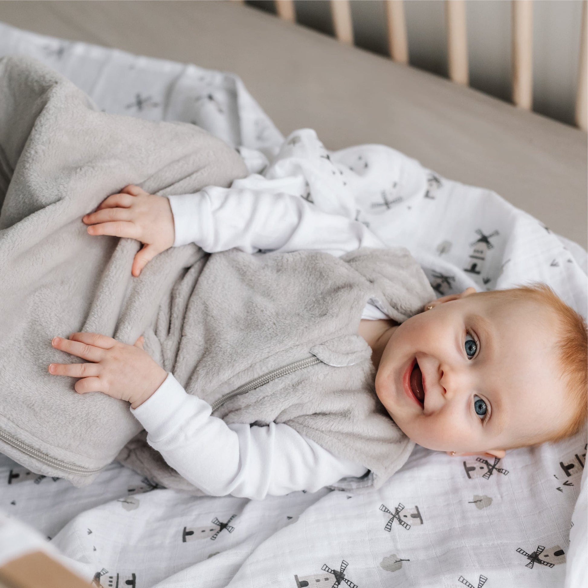 Our 1.5 TOG plush sleep sack is perfect for keeping baby warm on cooler nights. Made from a soft and cozy fabric, it provides snuggly comfort without the need for extra blankets. Choose it for fall, winter, or cooler rooms to ensure a warm and safe night's sleep.