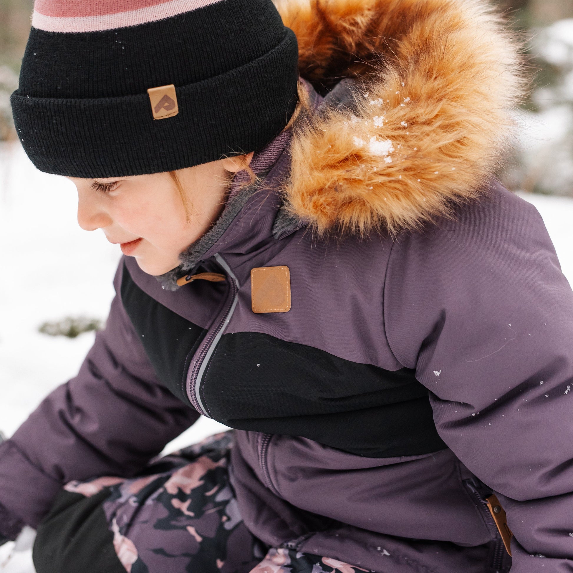 Embrace the winter season with confidence knowing your child is wrapped in warmth with our two-piece snowsuit in a striking abstract design. This snowsuit includes recycled materials, offering warmth and comfort for winter adventures. Its breathable, weather-resistant fabric ensures comfort during outdoor adventures, while the elegant faux-fur trim adds a touch of luxury. Designed in Canada, this snowsuit is a thoughtful choice for winter play, blending style and functionality seamlessly. Whether they're building snowmen or exploring snowy trails, your child will stay snug and stylish.