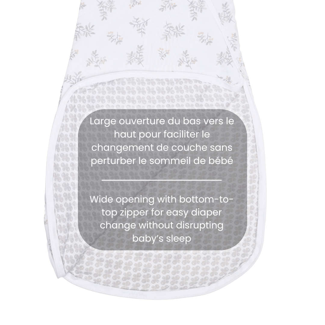 Embrace peace of mind with our woven cotton sleep bag, thoughtfully designed to support your baby’s restful nights. This sleep sack features a serene, leafy pattern that adds a gentle touch to your nursery. With a 2.0 TOG rating, it's perfect for ensuring warmth and comfort during cooler nights. The inverted zipper offers easy diaper changes, minimizing disruptions to your baby’s sleep. Crafted with care and designed in Canada, our sleep bag helps you feel confident, knowing your little one is safe and snug.