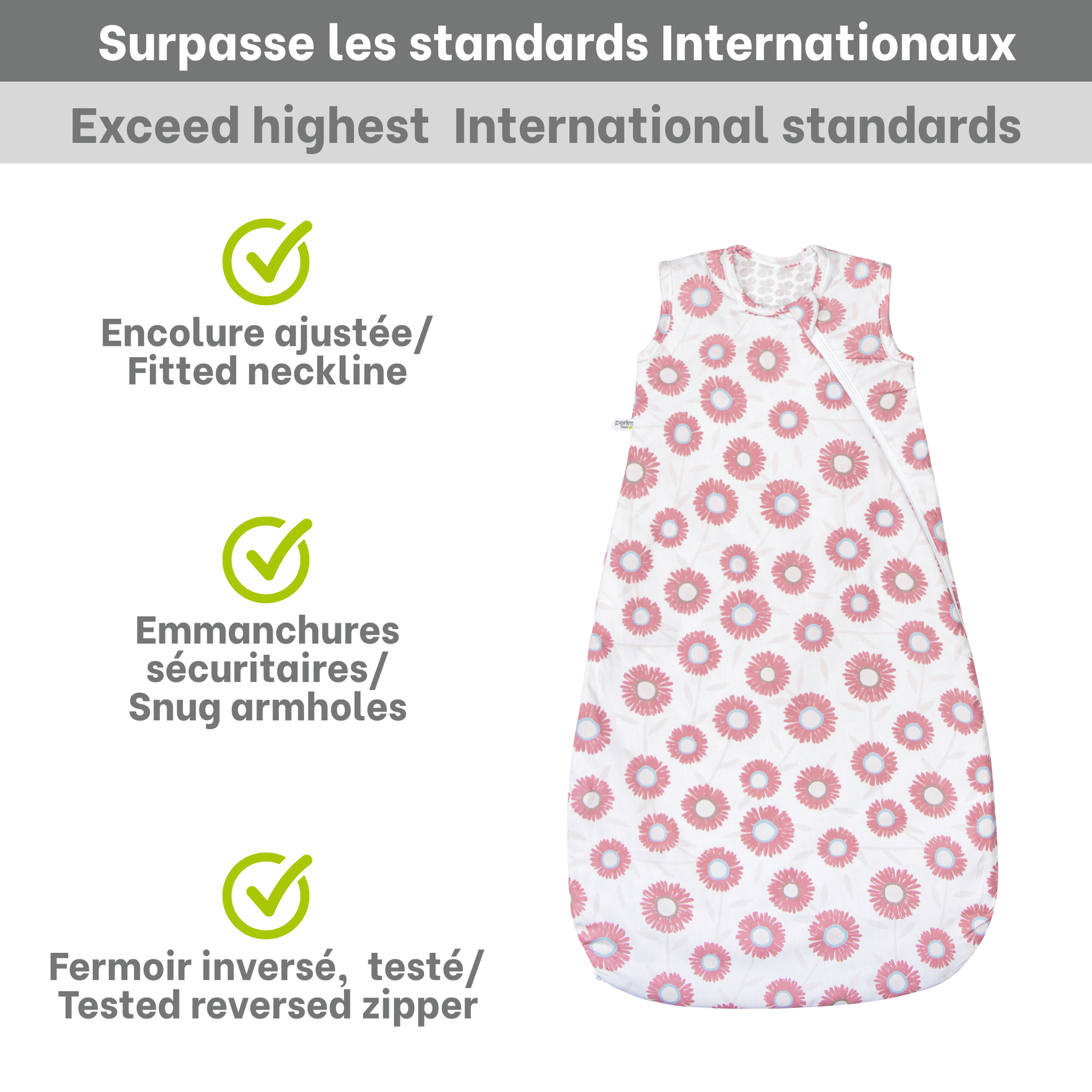 Discover the comfort and safety of our Perlimpinpin woven cotton sleep sack, thoughtfully designed to nurture your baby’s restful nights. Featuring a delightful daisy pattern in calming tones, this 2.0 TOG sleep sack provides the warmth and security your baby needs. The inverted zipper allows for easy diaper changes, ensuring minimal disruption to precious sleep. Crafted with care in Canada, this sleep sack is free from removable parts, offering peace of mind to parents. Trust in our commitment to quality, rigorously tested to meet international safety standards, making it an essential part of your baby’s sleep routine.