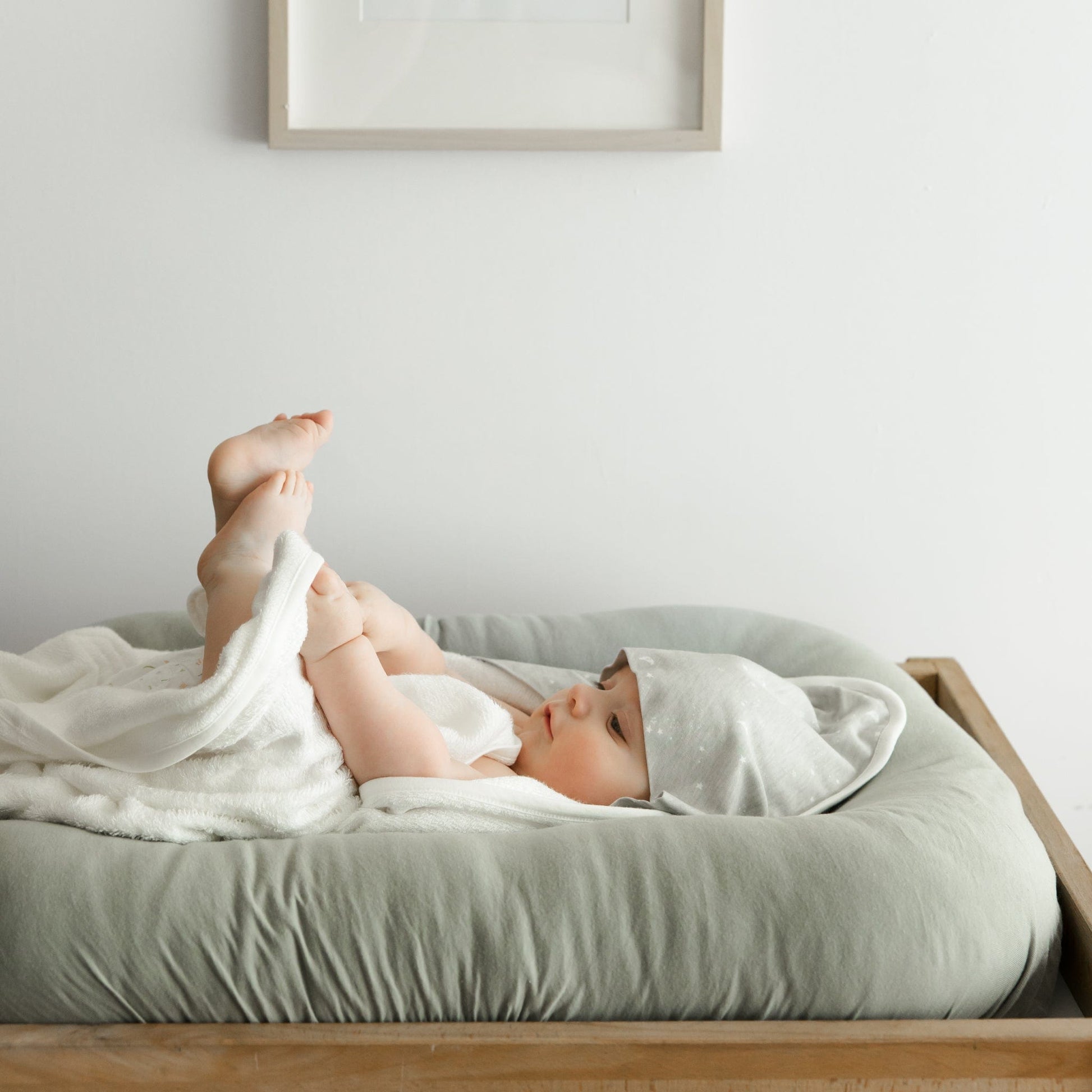 Enveloppe ton bébé de confort avec notre serviette à capuchon en bambou, conçue pour rendre l’heure du bain apaisante. Le motif doux de lunes et d’étoiles ajoute une touche magique à la routine de ton bébé. Sa texture ultra-douce est parfaite pour la peau délicate, tandis que le bambou garantit qu'elle est naturellement antibactérienne et très absorbante. Conçue avec soin par des parents pour des parents, cette serviette imaginée au Canada deviendra un élément précieux de vos rituels du coucher. Découvre la tranquillité d'esprit en sachant que ton bébé est enveloppé de qualité et de sécurité.