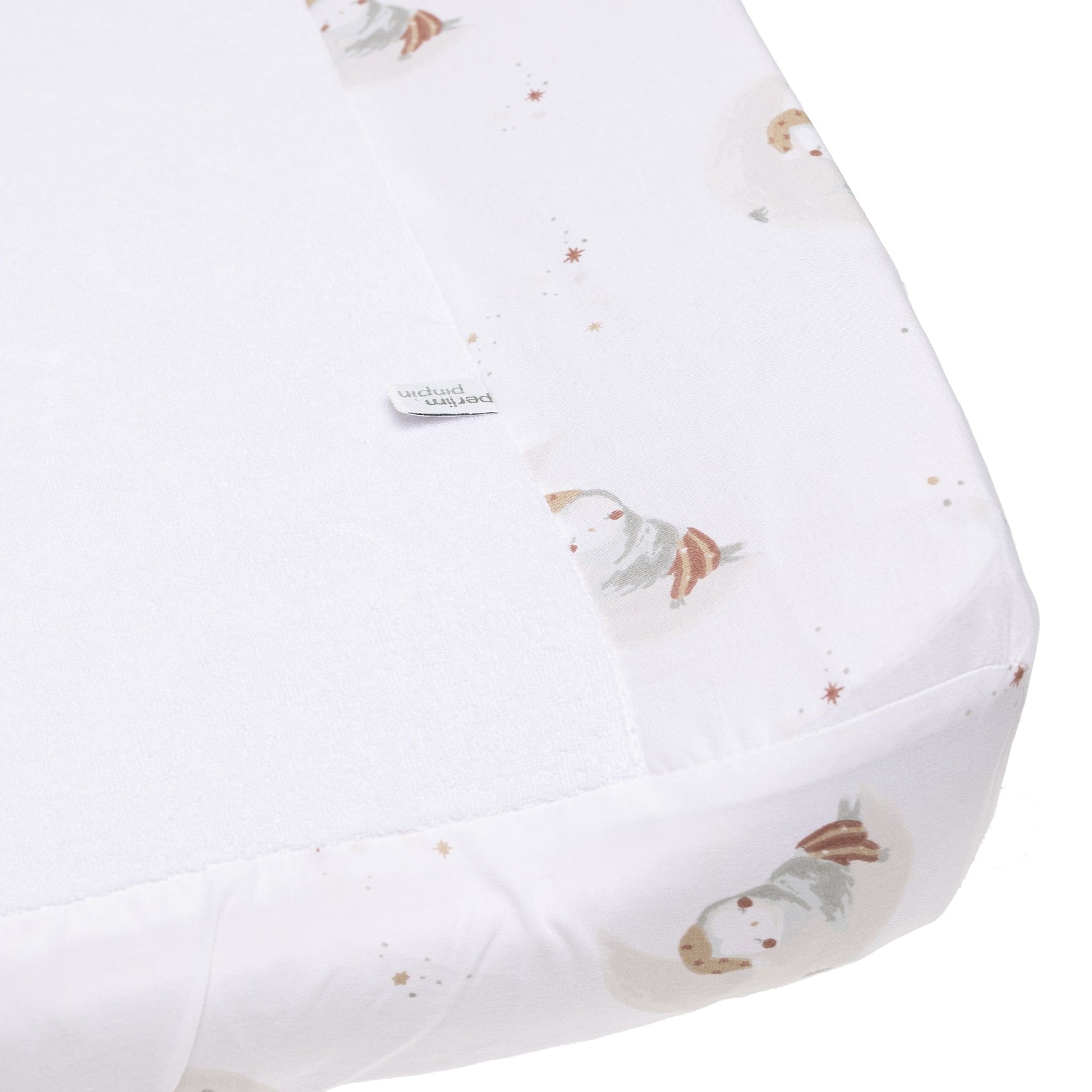 Cette housse de matelas à langer toute douce rend chaque changement de couche plus simple et plus agréable, tout en t’offrant une housse pour matelas à langer au Canada sur laquelle tu peux vraiment compter. Conçue pour les matelas standards (environ 33 x 17 x 4 po), elle propose une bande centrale en ratine moelleuse, confortable pour la peau sensible de ton bébé et pratique pour absorber les petits dégâts. Les côtés sont animés d’un motif de hiboux aux tons tout en douceur, qui ajoute une touche rassurante à la chambre de bébé. Pensée au Canada par des parents, pour les parents, la housse reste bien en place pour que tu puisses te concentrer sur ton bébé plutôt que sur le matelas. Tu peux aussi l’agencer avec les draps assortis pour créer un joli coin de change harmonieux.