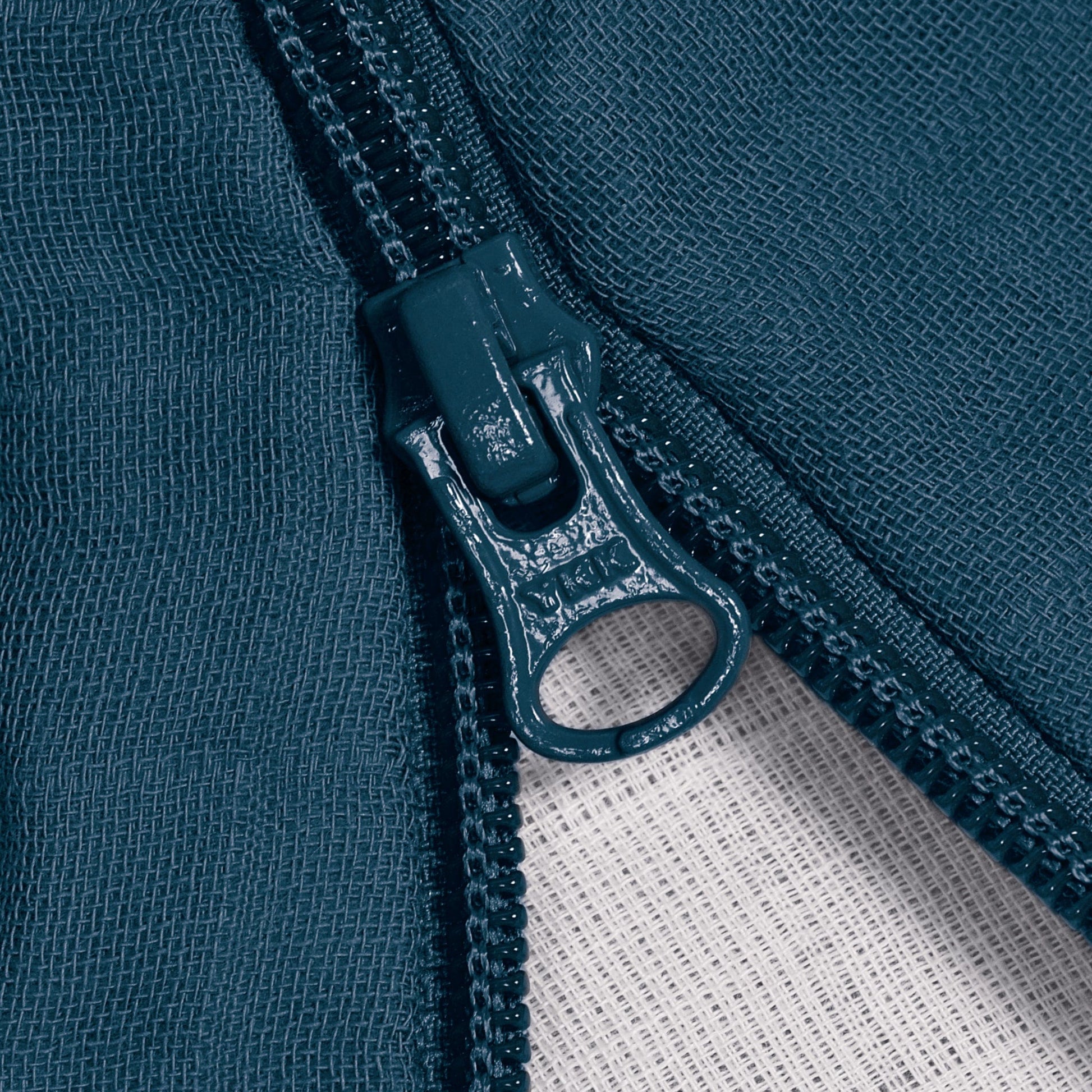 Laver avant d’utiliser, fermer la fermeture éclair avant de laver, laver en eau froide avec couleurs semblables en utilisant un savon doux, ne pas utiliser d’agent blanchissant, sécher à basse température