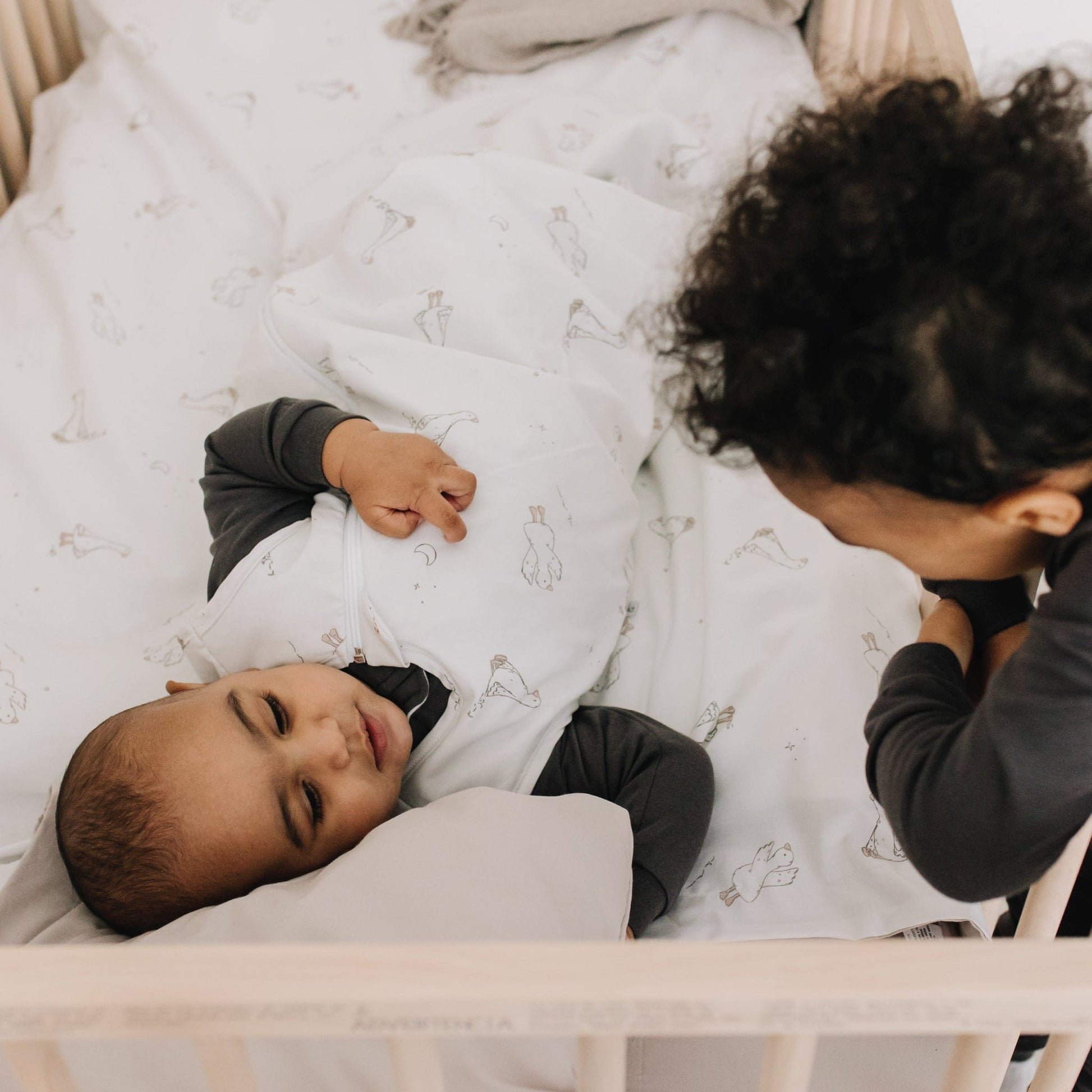 Housse et couette pour lit de bébé de Perlimpinpin. À agencer avec tous les autres items de notre collection literie pour bébé.