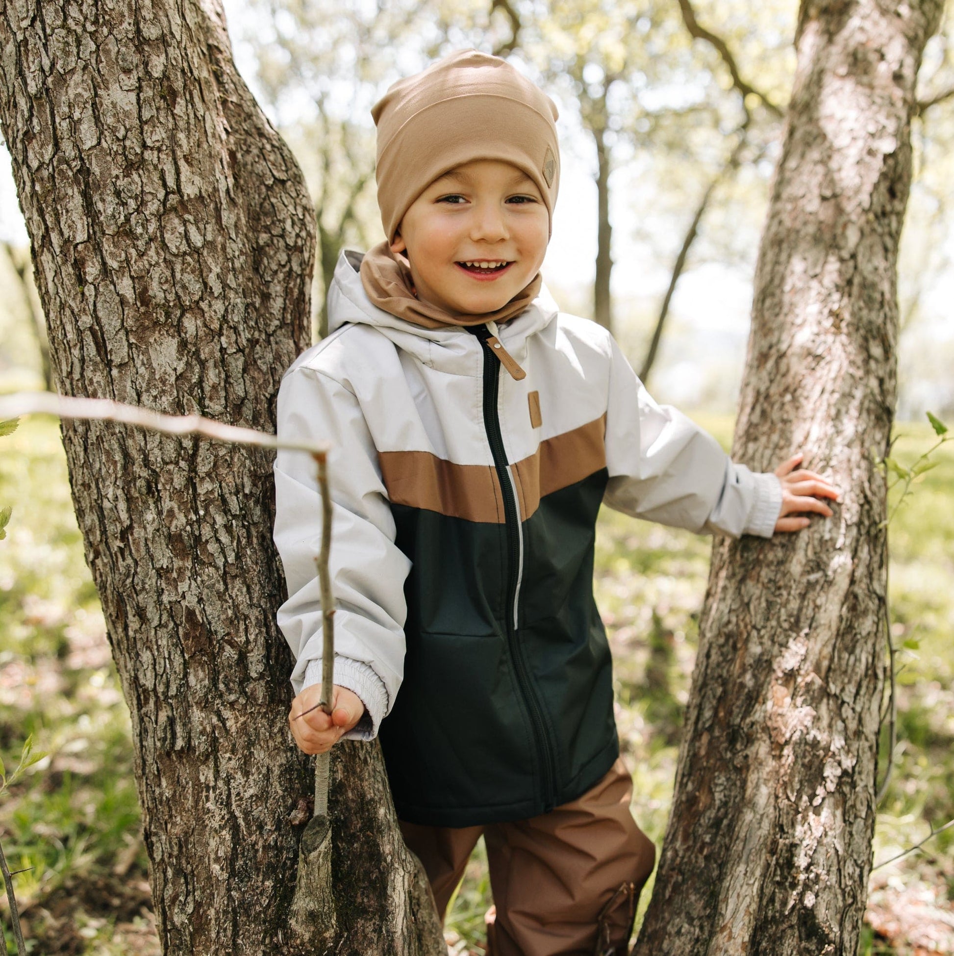 Voici un ensemble deux pièces de mi-saison pensé pour que tu profites vraiment des sorties avec ton enfant. Le bloc de couleurs inspiré des sentiers, avec ses tons doux et terreux, se fond autant dans le parc du quartier que lors des randos en famille. Doublé de polar, le manteau garde ton bébé ou ton enfant bien au chaud sans être trop lourd, une belle option pratique à la place d’un habit de neige complet au printemps ou à l’automne. Le manteau à capuchon et le pantalon assorti forment un ensemble mi-saison imperméable au vent et résistant à l’eau, idéal pour les journées changeantes. Conçu au Canada par des parents qui connaissent la réalité des matins pressés, cet ensemble offre confort, résistance et un look soigné pour que tu sortes dehors en toute confiance.