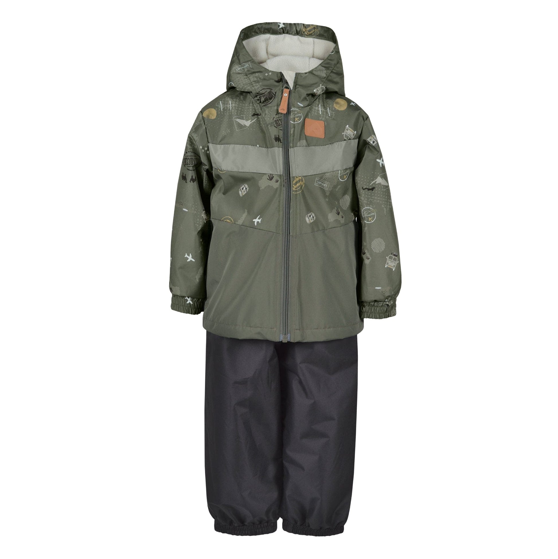 Avec cet ensemble 2 pièces de mi-saison, ton enfant profite enfin des journées fraîches sans que tu aies à t’inquiéter du vent ou des petites averses. Le manteau à capuchon affiche un motif de voyage rempli de petits avions et pictogrammes, dans des tons naturels tout doux, jumelé à un pantalon uni plus foncé pour un look bien soigné. La doublure en polar garde ton enfant bien au chaud, tandis que l’extérieur coupe-vent et déperlant fait le travail quand la météo change d’idée. Pensé par des parents, chaque détail simplifie la routine : fermeture éclair YKK, poignets et ourlets élastiqués, bandes réfléchissantes et étiquette d’identification. Conçu au Canada, cet habit de neige léger de mi-saison devient vite ton essentiel pour la cour d’école, la garderie et toutes les sorties du quotidien.
