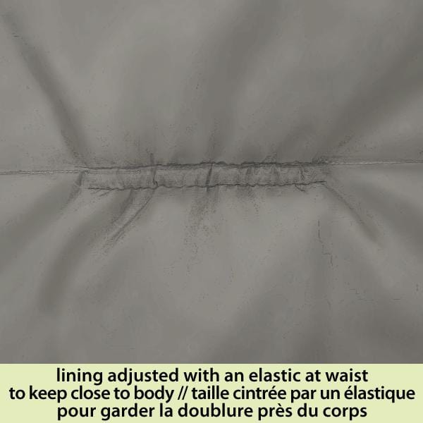 - Doublure ajustée avec un élastique à la taille pour rester près du corps