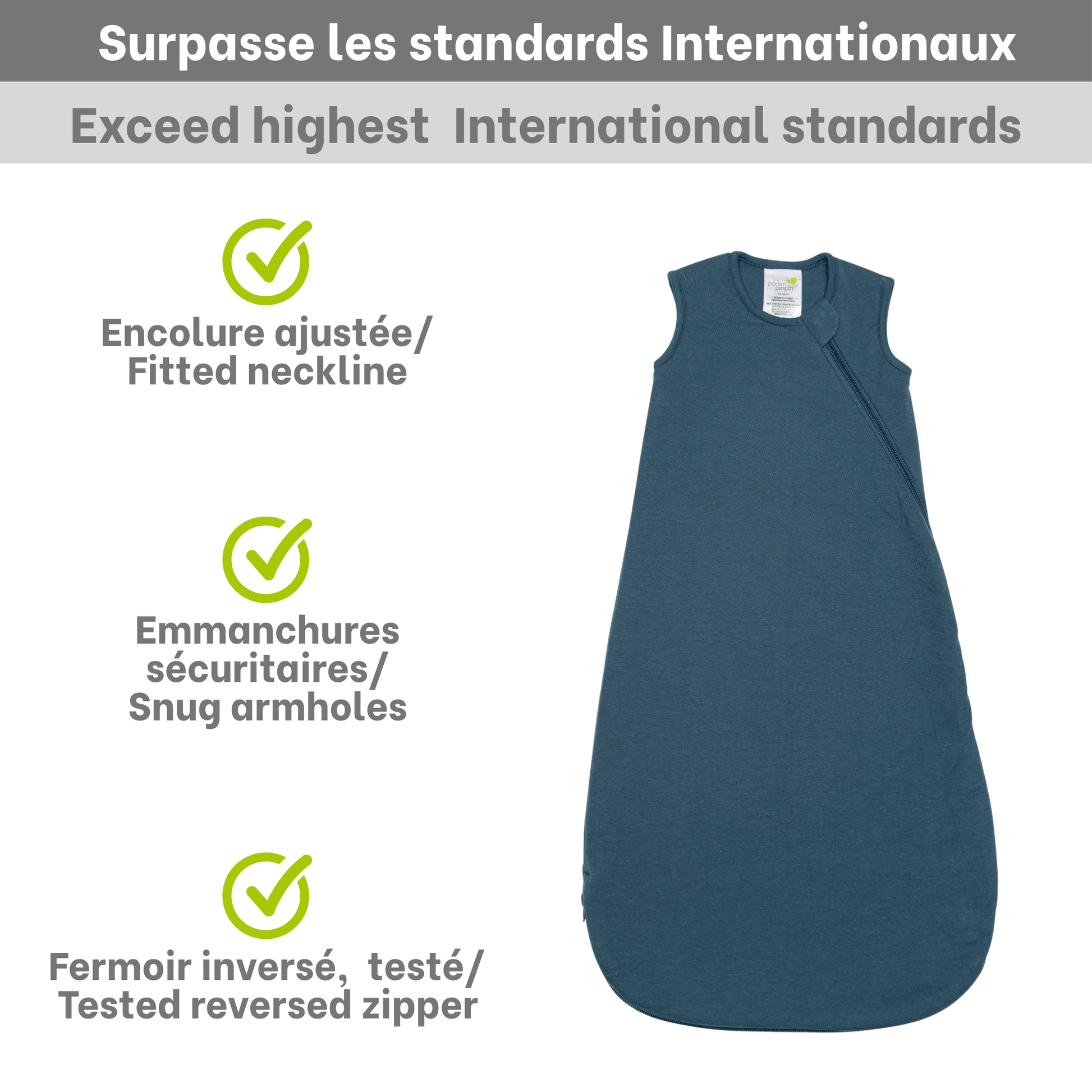 Offre à ton bébé un confort exceptionnel avec notre sac de nuit matelassé en bambou, conçu pour rassurer tous les parents. Avec son indice de chaleur de 2,5 TOG, ce sac de nuit garde ton petit bien au chaud pendant les nuits fraîches. Fabriqué dans un mélange doux de bambou et de coton, il est délicat sur la peau sensible, garantissant un sommeil paisible pour bébé et toi. Ce sac de nuit conçu au Canada dispose d'une fermeture éclair inversée pour faciliter le changement de couche et d'une encolure sécurisée pour éviter tout glissement. Son ton denim apaisant ajoute une touche de sérénité à la chambre de bébé. Fais confiance à un produit qui respecte les normes de sécurité internationales et qui est fabriqué avec soin par des parents, pour des parents.