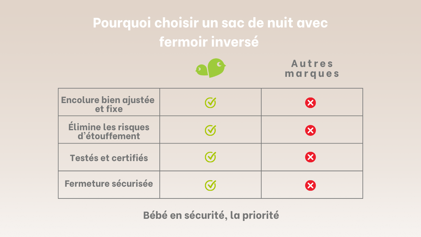 Afin d'éviter les risques d’enchevêtrement, ils sont dotés d’une fermeture éclair inversée unidirectionnelle qui empêche les ouvertures accidentelles, contrairement aux fermetures à double sens.