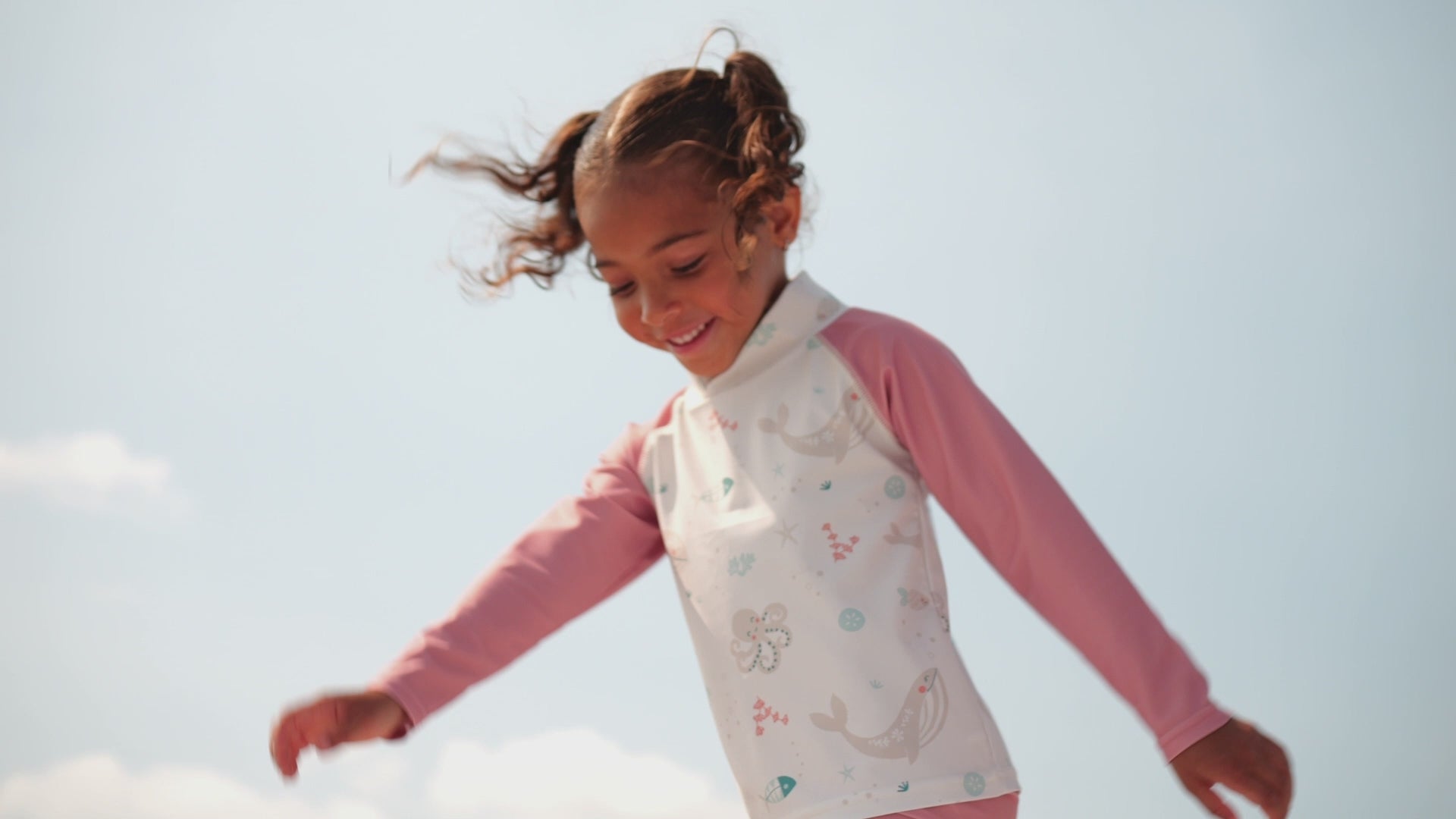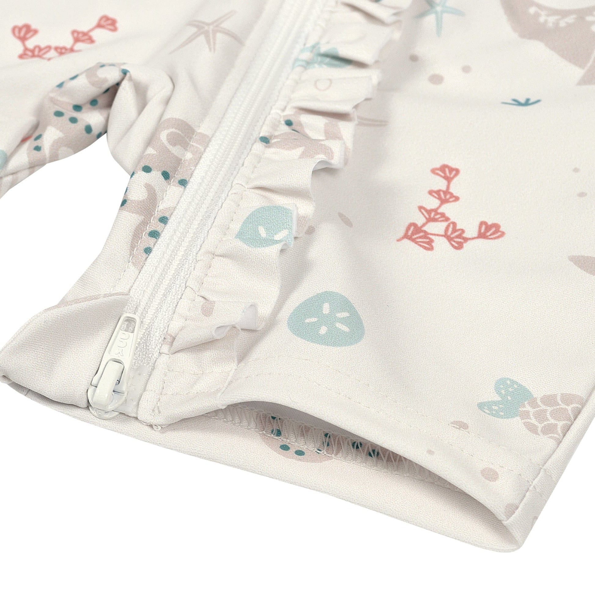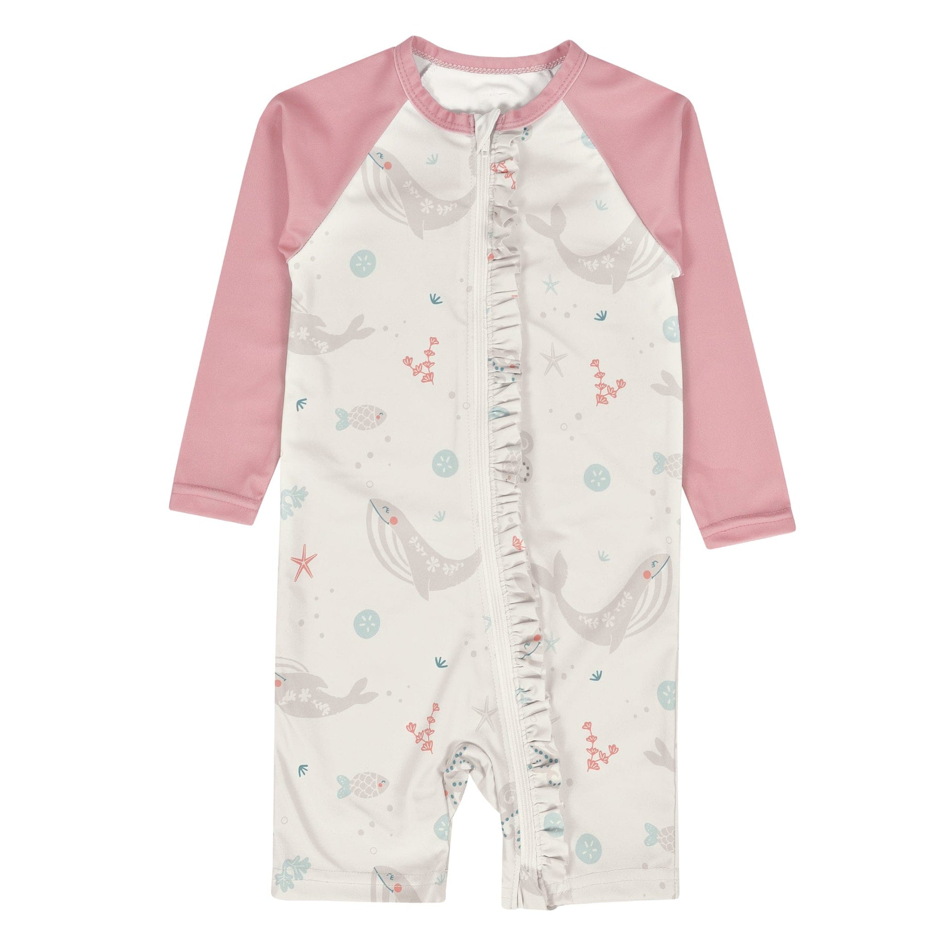 Cette barboteuse de bain UV pour bébé a été pensée pour que tu profites de la plage avec bébé l’esprit tranquille. Conçue au Canada par des parents qui connaissent bien les sorties au soleil, elle affiche un joli décor marin avec de grands baleines tout en douceur, de petits poissons et des détails de fond de mer, le tout rehaussé de manches raglan dans une teinte rosée et d’un volant discret le long de la fermeture éclair. Le tissu extensible offre une protection UV 50+ et sèche rapidement après les jeux dans l’eau, idéal comme barboteuse de plage UV pour bébé de 6 mois à 3T. La fermeture éclair pleine longueur avec protège-menton facilite l’habillage même quand il y a du sable partout. Fait avec des matières recyclées, ce maillot une pièce avec fermeture éclair aide ton bébé à rester confortable pour profiter vraiment du moment.