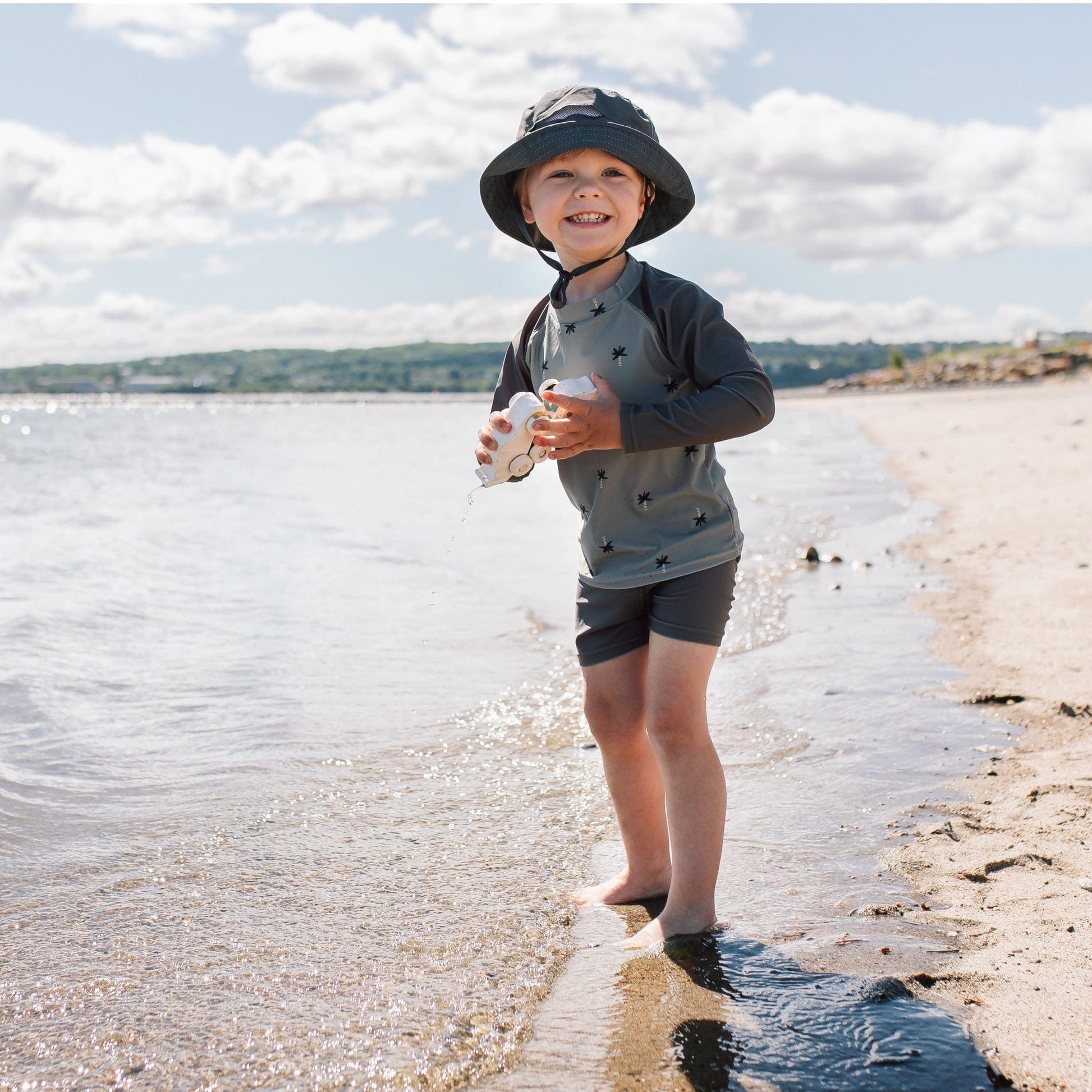 Le must de l’été. À la plage ou simplement pour jouer dehors, ce joli chapeau fabriqué de tissu avec protection solaire FPU50+ protégera les tout-petits des effets néfastes du soleil. S’agence parfaitement avec la jolie collection de maillots. Disponible en 5 coloris.