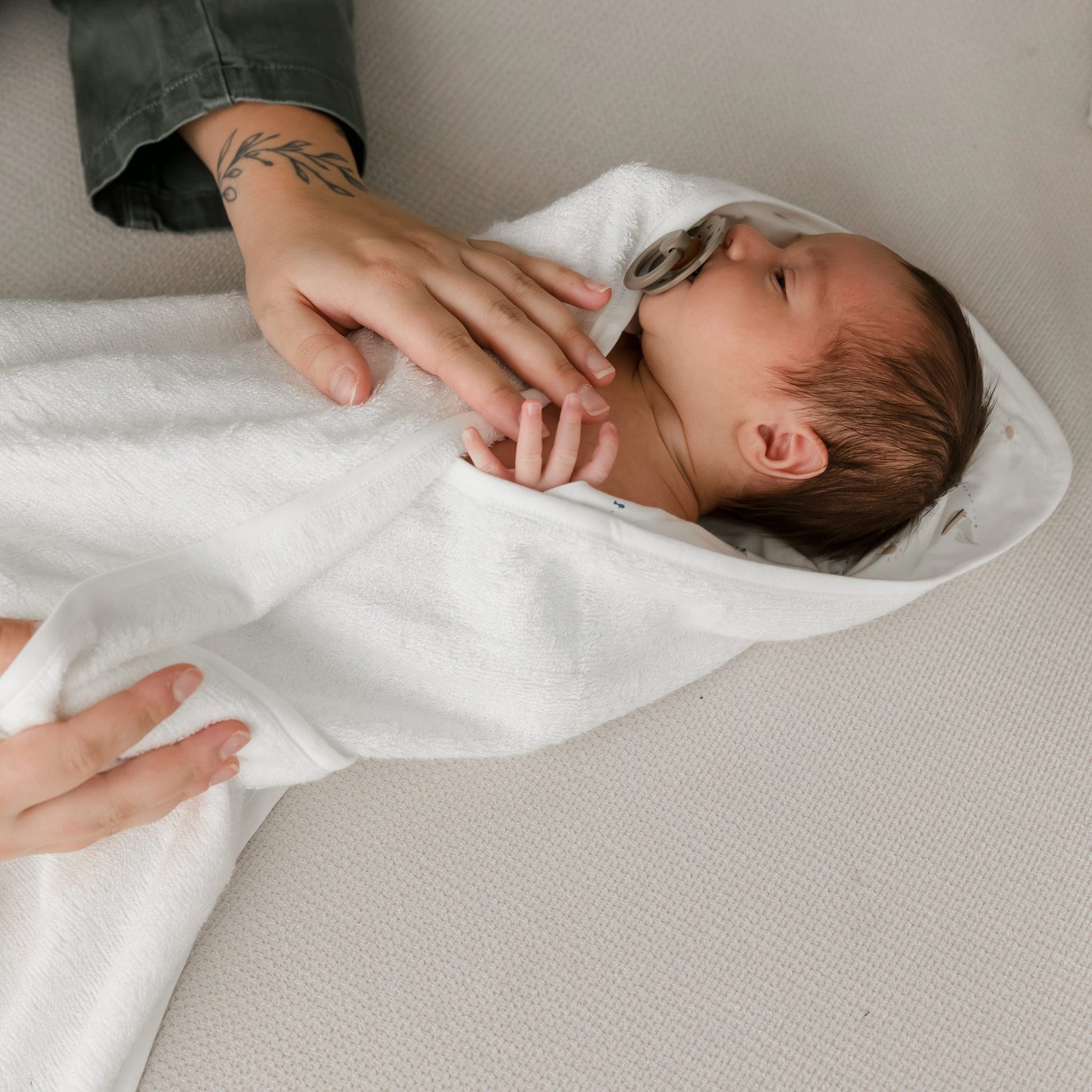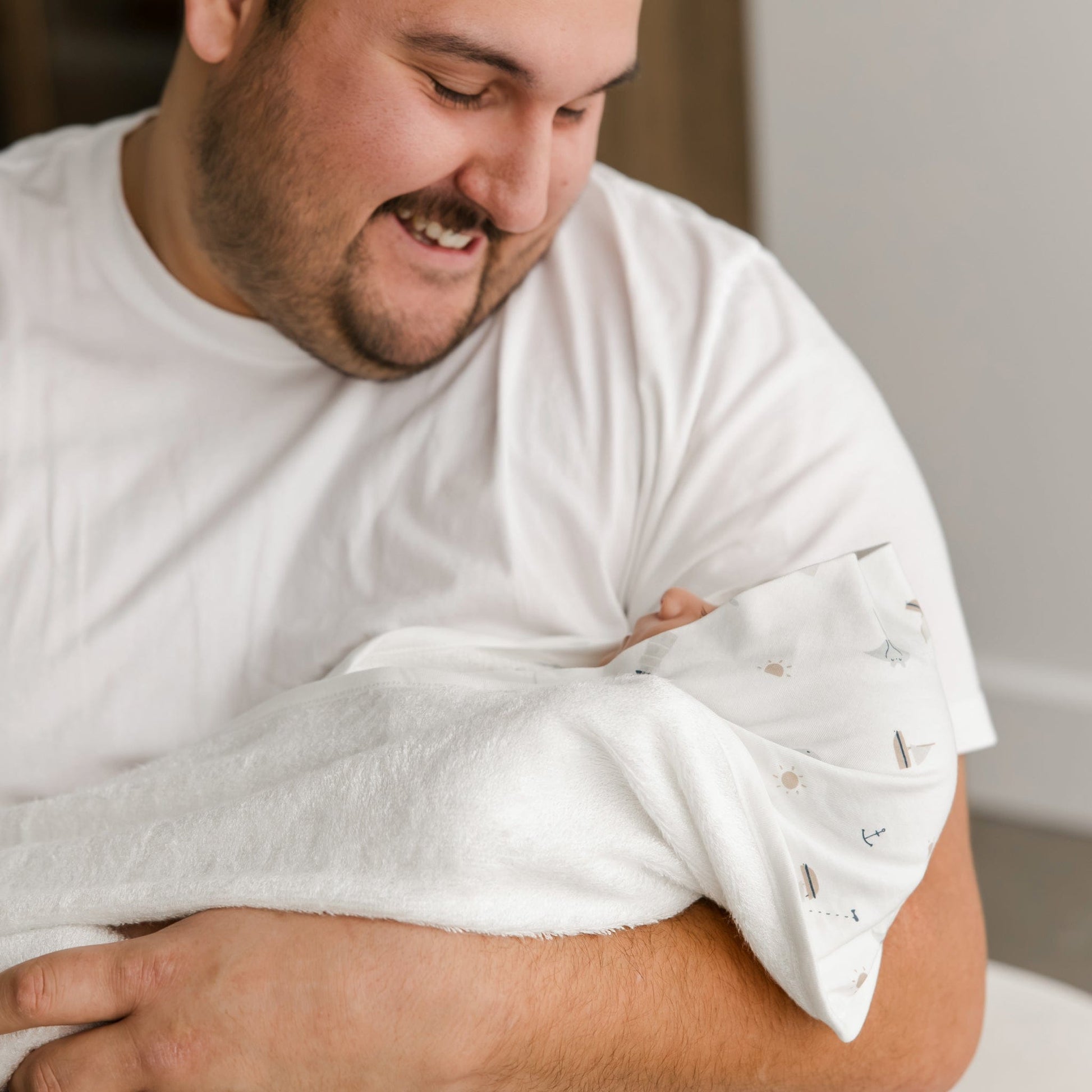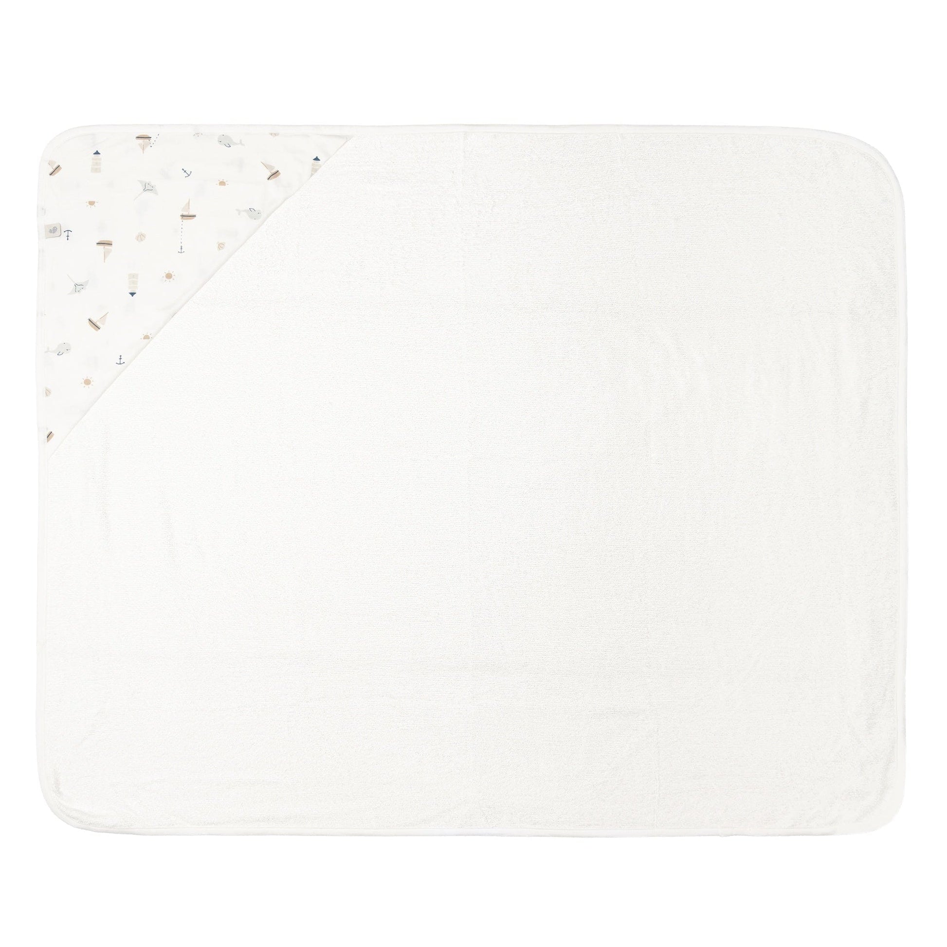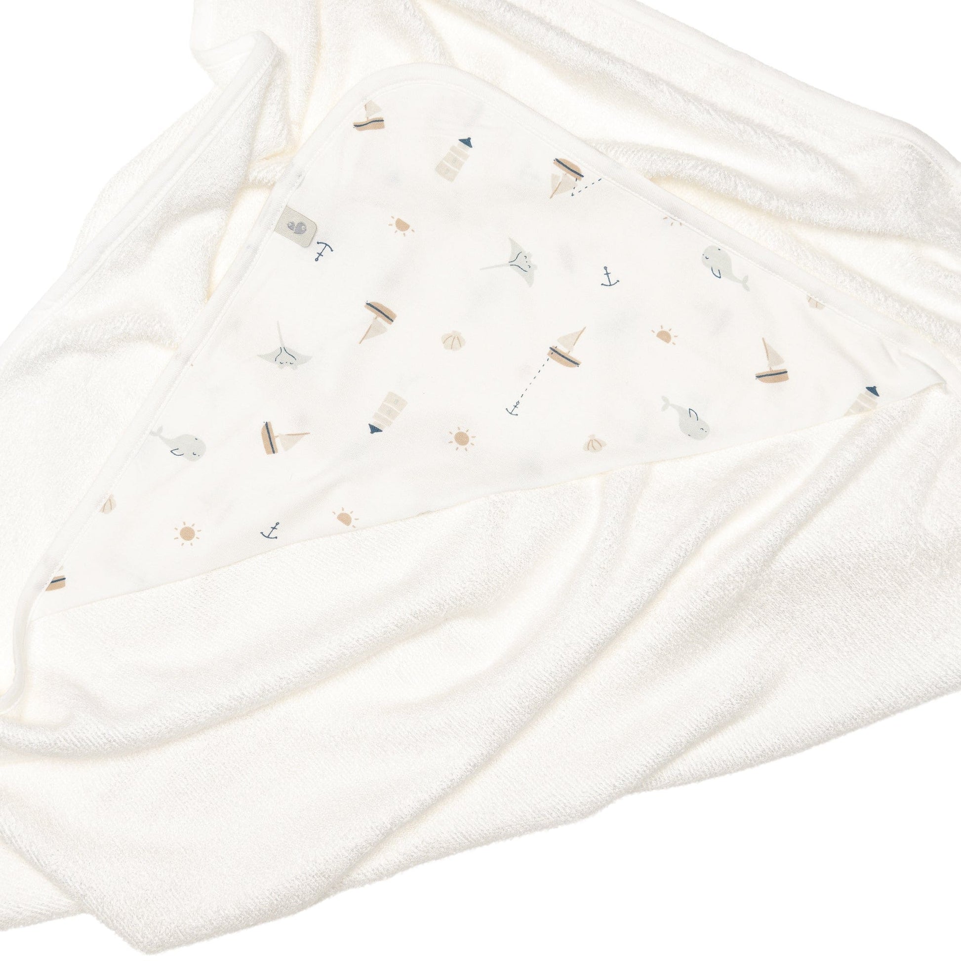 Wrap your little one in comfort after every bath with our bamboo hooded baby towel, thoughtfully designed for peaceful routines at home. This ultra soft bamboo hooded towel for babies features a cozy 100% bamboo terry body and a smooth hood printed with gentle ocean friends—tiny sailboats, whales, rays, anchors, suns, and lighthouses drifting across a calm sea. The generous 28''x35'' size gives you plenty of room to snuggle, dry, and keep your baby warm from head to toe. Designed in Canada by parents who understand real-life bath time, it balances absorbency, softness, and durability so you can focus on connection instead of fuss. Beautifully packaged and easy to love, it makes a charming bamboo hooded towel baby shower gift.