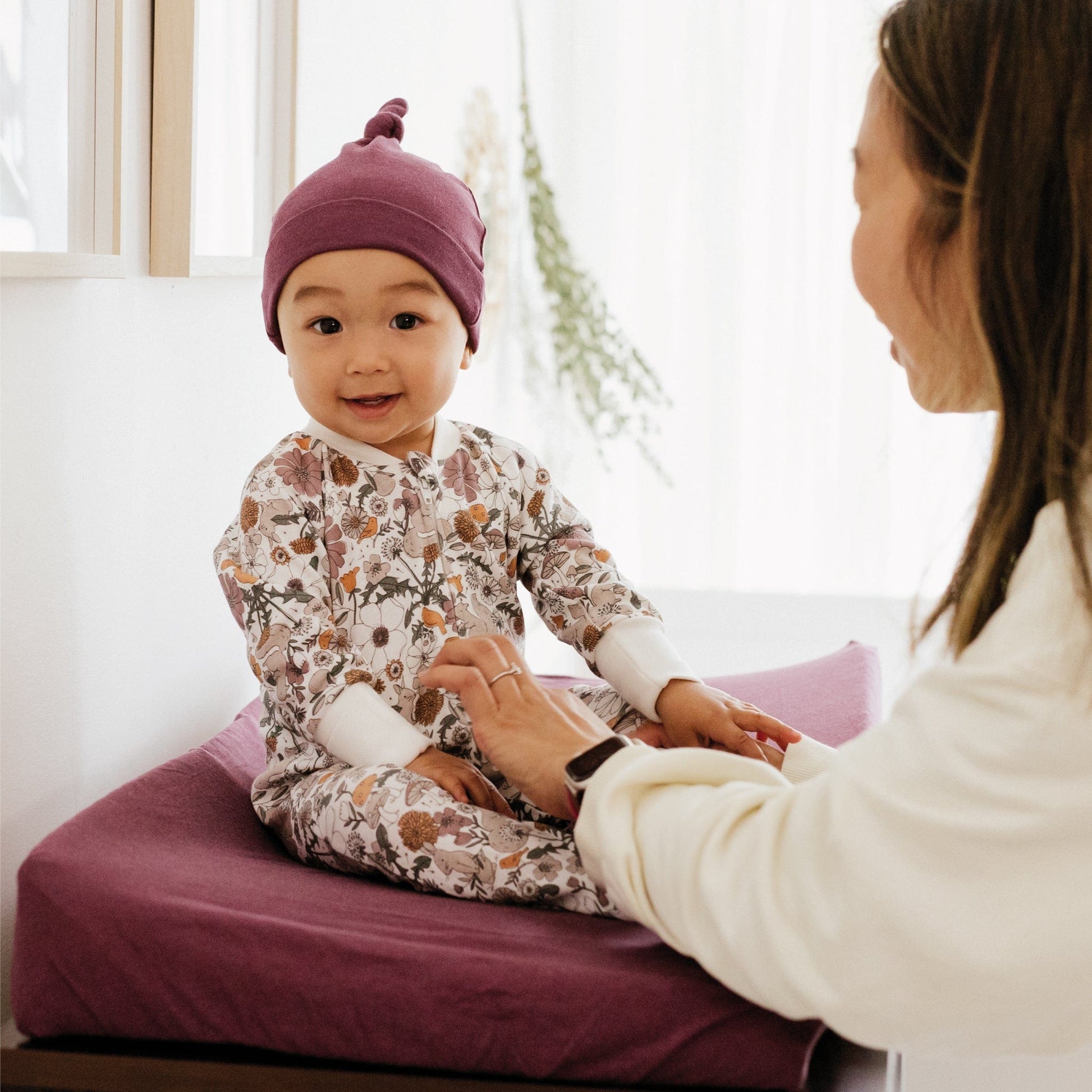 Made of viscose from bamboo, this Perlimpinpin's newborn beanie will protect baby's head from UV rays in the coziest way while maintaining baby's natural body heat.
