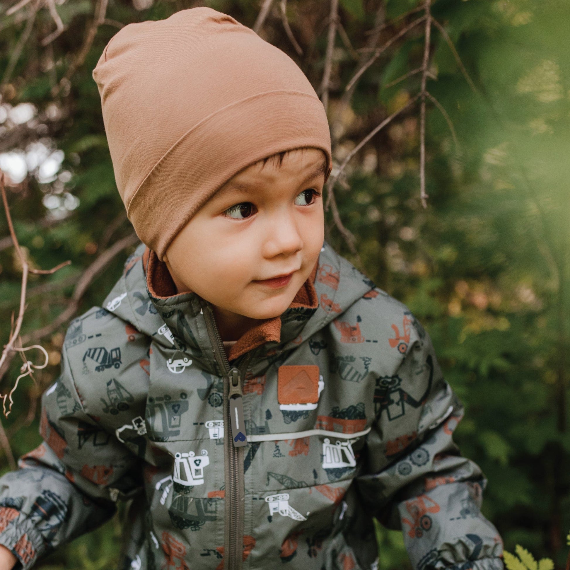 Our little jersey beanie is perfect for cooler days. Made from soft and stretchy cotton, this easy-to-slip-on hat is enhanced with a decorative vegan leather tag on the front flap. It pairs perfectly with our two-piece sets, one-piece outfits, or even our baby buntings.
