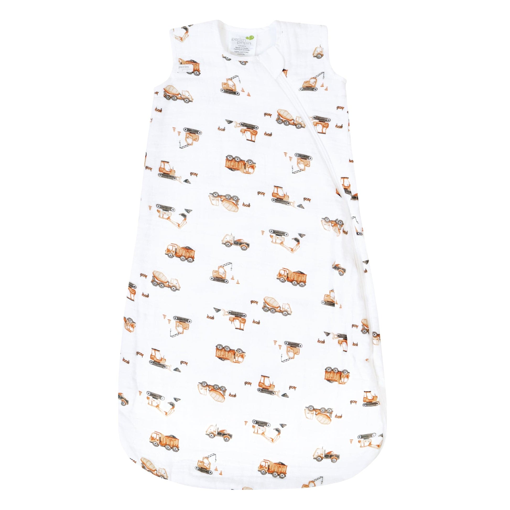 Built for little dreamers who love big trucks, this cotton muslin sleep sack 0.7 TOG wraps your baby in breathable comfort for spring and summer nights. The lightweight muslin fabric helps regulate temperature, making it an ideal lightweight muslin sleep sack for summer baby naps and bedtime. A playful all-over construction site print, with friendly vehicles and soft neutral tones, adds a fun touch to the nursery while keeping the look calm and soothing. Designed in Canada by parents who understand real-life routines, this Perlimpinpin muslin wearable blanket features a reverse zipper for easy changes and a secure neckline that stays put. Rigorously tested by third-party labs, this breathable cotton muslin sleep bag 0.7 tog meets international safety standards so you can feel confident every time you zip your baby in.