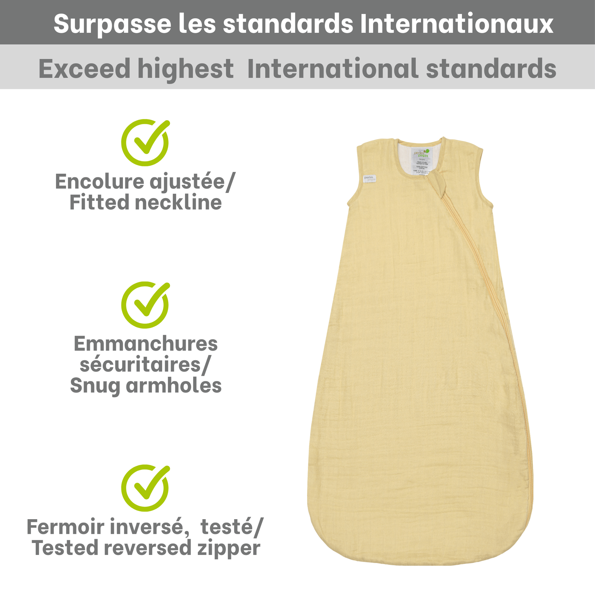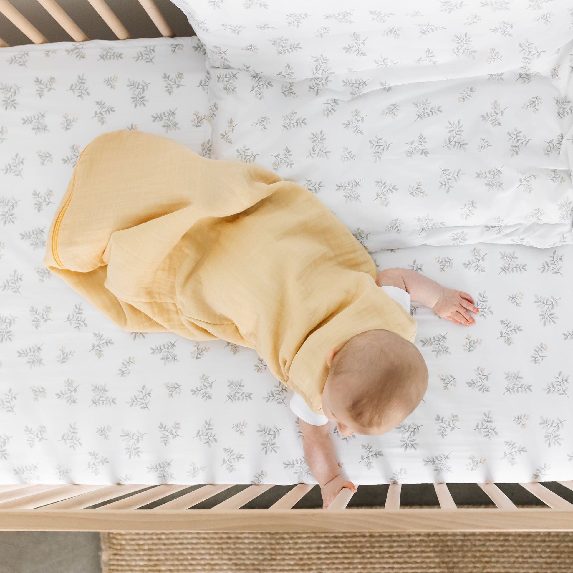Wrap your baby in comfort with our cotton muslin sleep sack, designed to create the ideal sleeping environment. This 0.7 TOG sleep sack offers a lightweight and breathable option, perfect for warmer nights. Crafted from premium cotton muslin, it envelops your little one in a soft, airy feel, ensuring they stay cozy and at ease. The gentle lemon hue adds a touch of sunshine to bedtime, while the thoughtful design provides a secure fit. Designed by parents, for parents, this sleep sack meets rigorous safety standards, giving you peace of mind.
