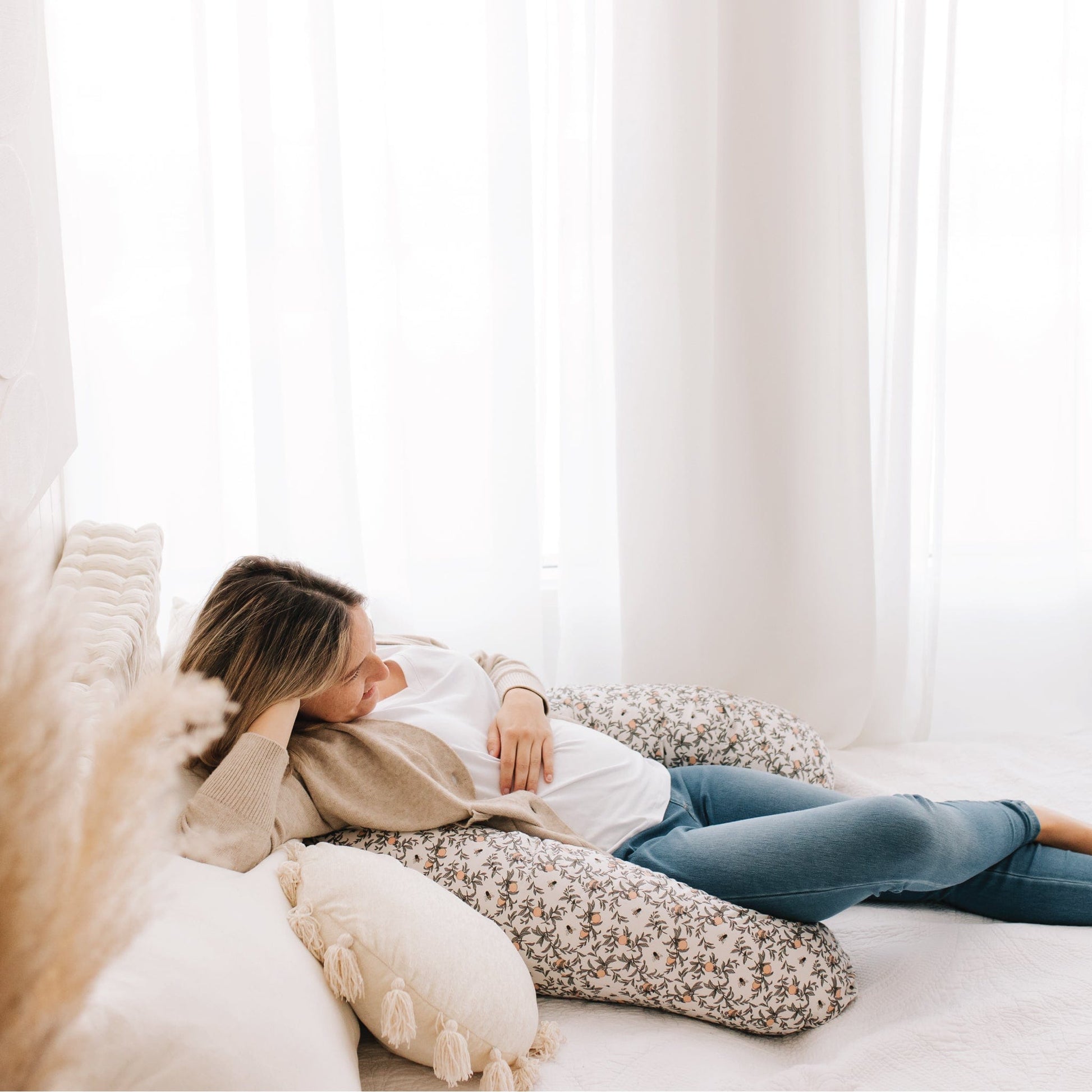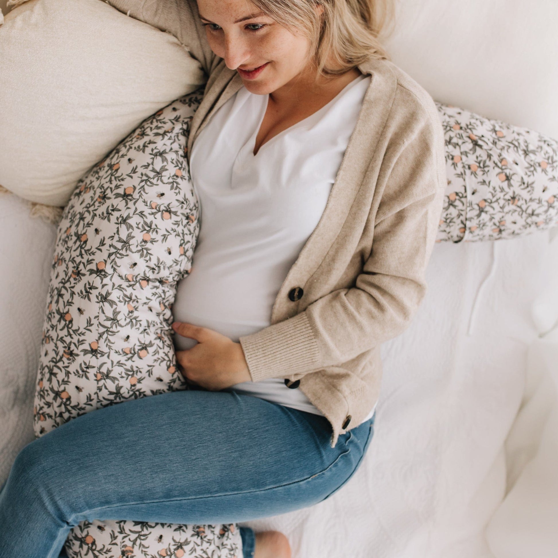 Versatility at its best! This pillow ensures comfort before and after baby's birth. It can be used as a body pillow, a nursing pillow and support for baby!