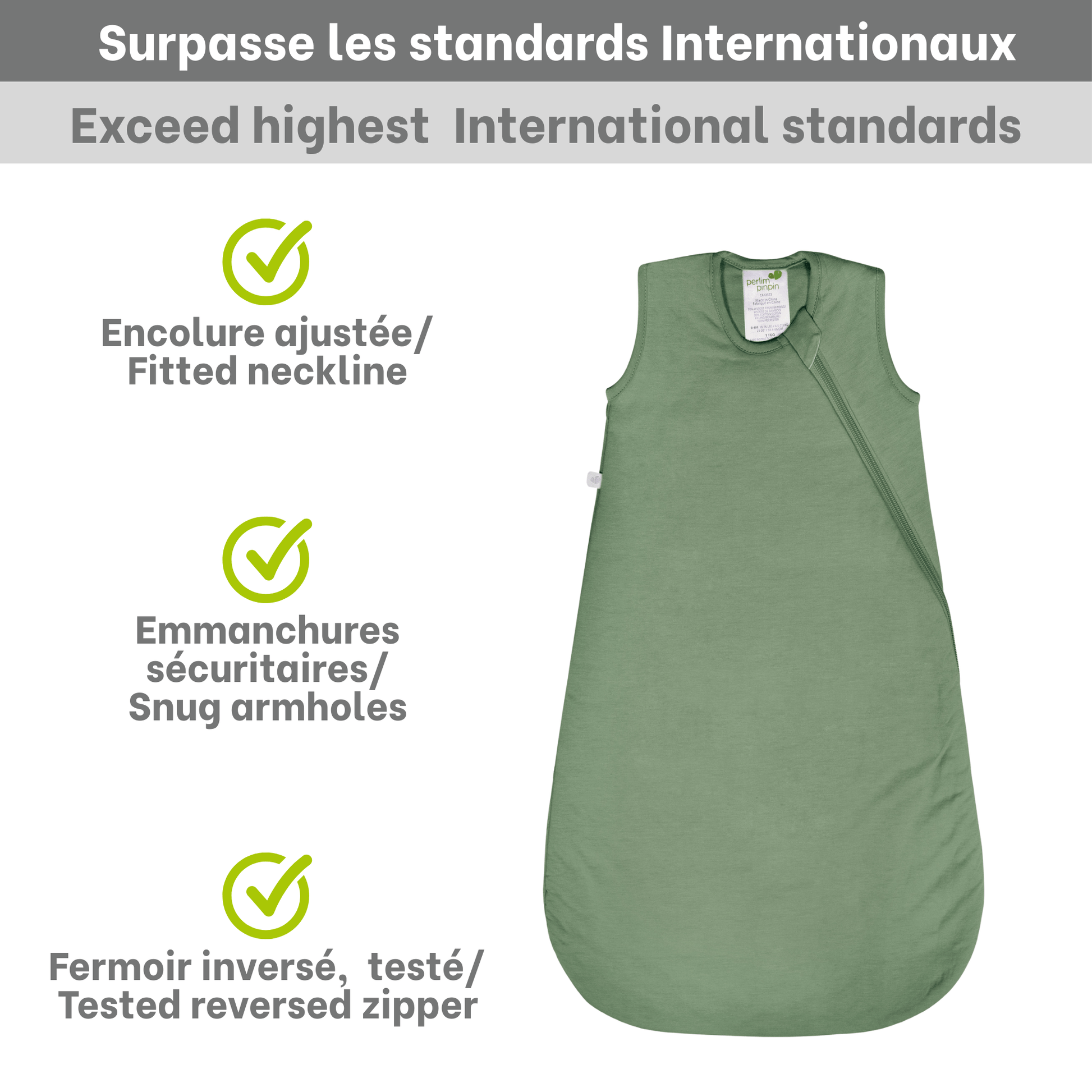 Wrap your baby in the comfort of our bamboo sleep sack, designed to provide warmth during the cooler months with its 2.5 TOG rating. The soothing, natural tones add a calming touch to bedtime routines. Crafted from a soft blend of bamboo and cotton, this sack is gentle on sensitive skin, making it ideal for babies with allergies or eczema. Designed in Canada, it features a secure neckline and opens from the bottom to ensure safety and ease during nighttime changes. Trust in the quality of a product tested by independent labs, ensuring your little one’s peaceful sleep.