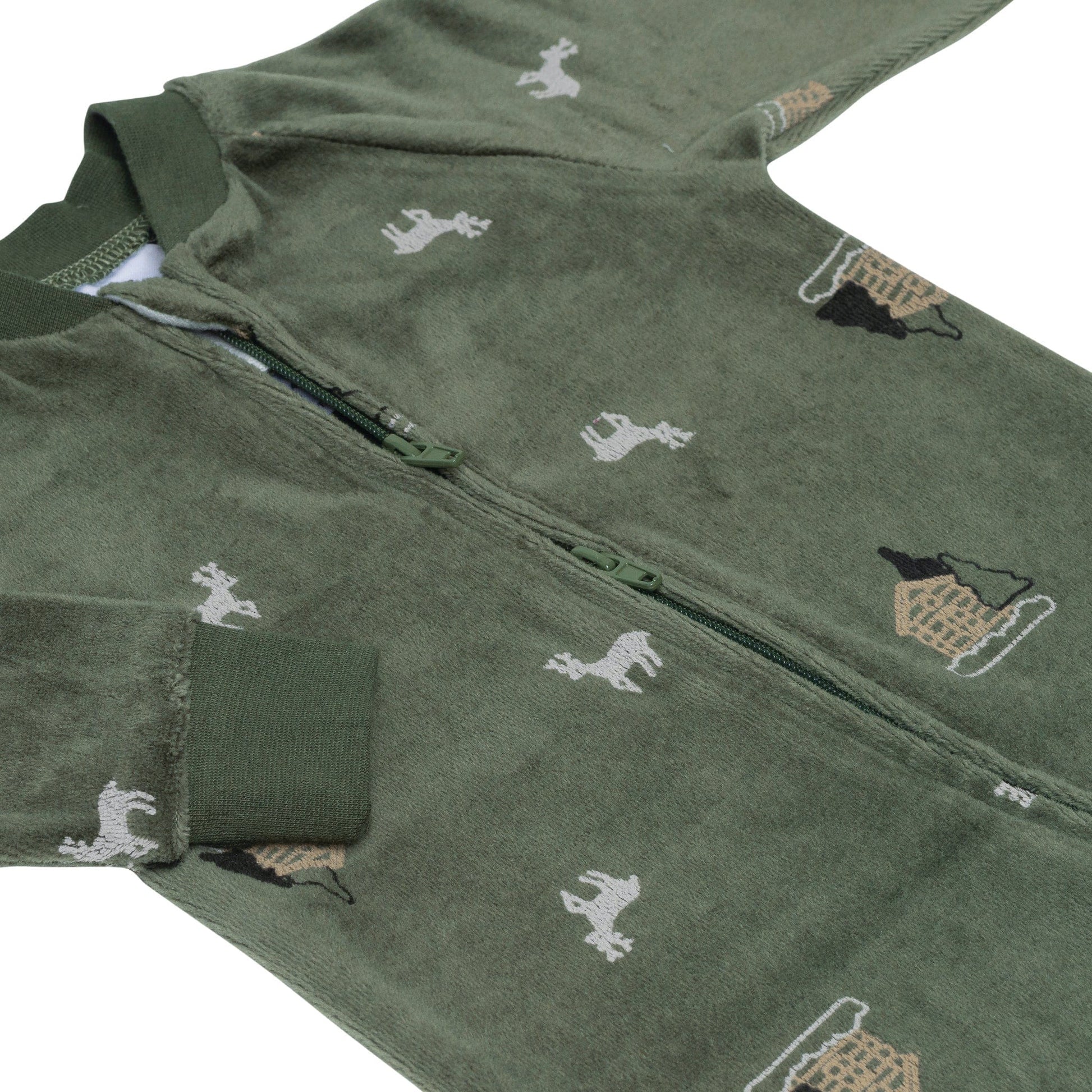 Embrace the cozy warmth of winter with our velvet baby sleeper, designed to keep your little one snug all season long. The delightful forest print adds a touch of whimsy, while the soft velvet fabric offers a gentle embrace against tender skin. Featuring a practical two-way zipper, these pajamas ensure easy dressing and diaper changes, making nighttime routines a breeze. Thoughtfully crafted with elastic ankles and anti-slip soles for sizes 12 months and up, they provide both safety and comfort. Designed in Canada, these pajamas are a must-have for every parent's peace of mind.